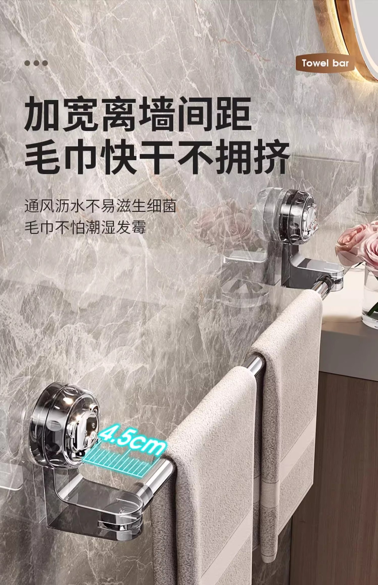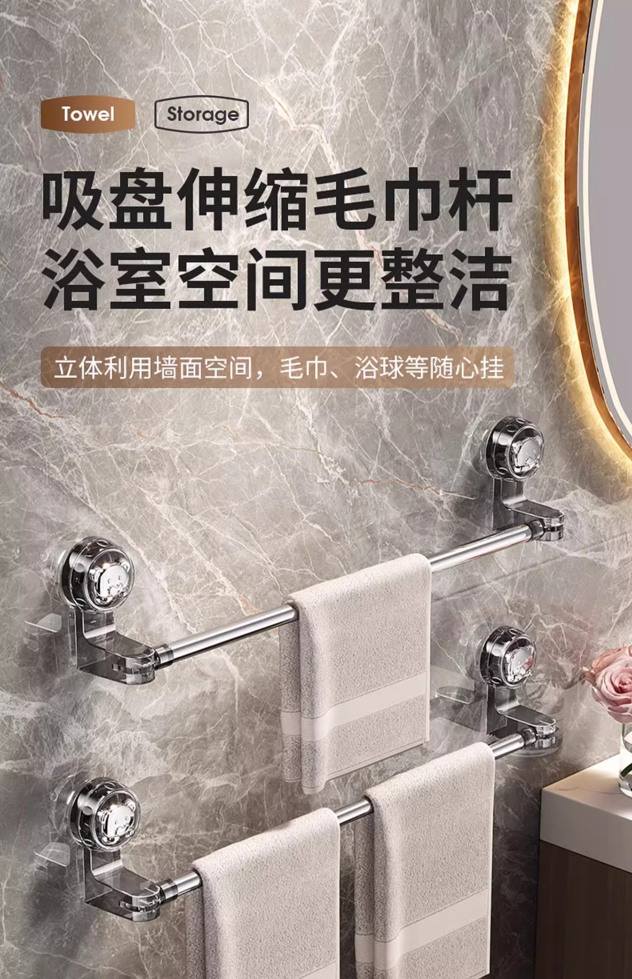 Держатель для полотенец на присосках для ванной без сверления выдвижная полка для хранения полотенец