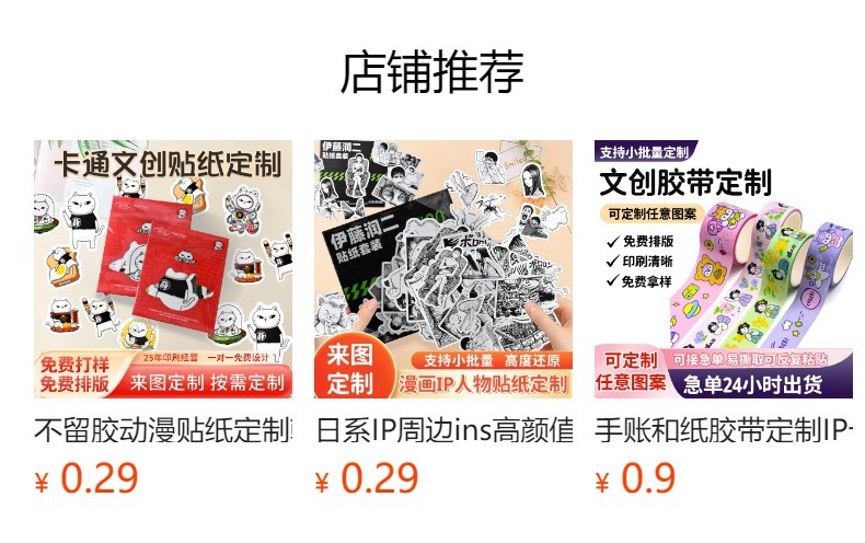 ![]() | Stamp stickers [customized according to drawings] | 100шт: ¥0.85, 1000шт: ¥0.05, 10000шт: ¥0.01 | 100000000 | 6146472855366 | |