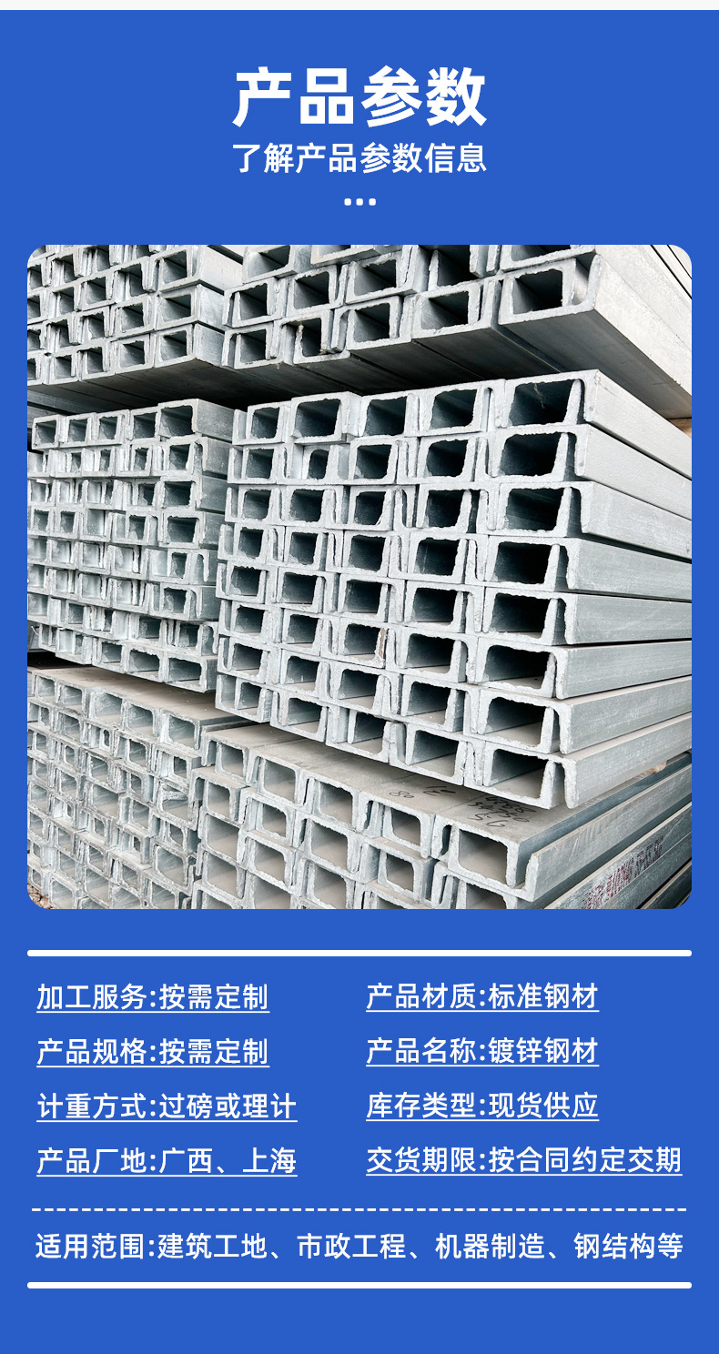 Производитель оцинкованной каналки Q235 для навесов, U-образная сталь, колонна, стальная конструкция, антикоррозийная