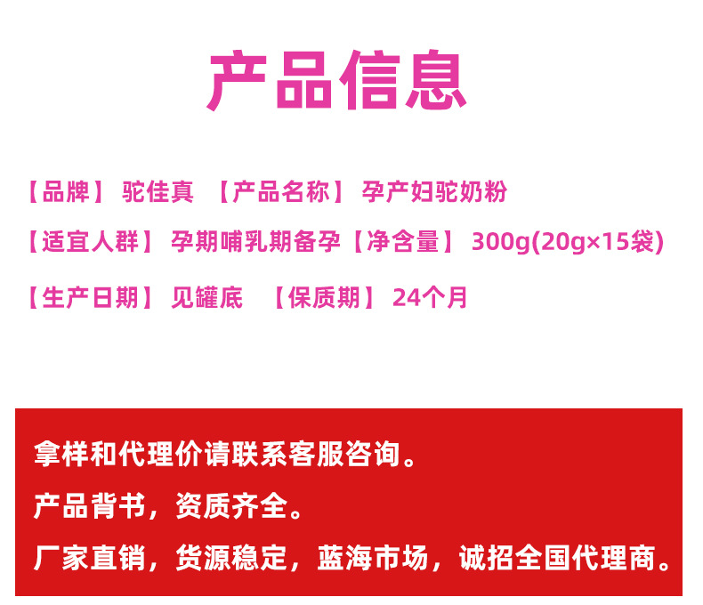Порошок молока верблюда Tuojiazheng для беременных, 300г/банка, оптовая продажа, консультации по обслуживанию клиентов