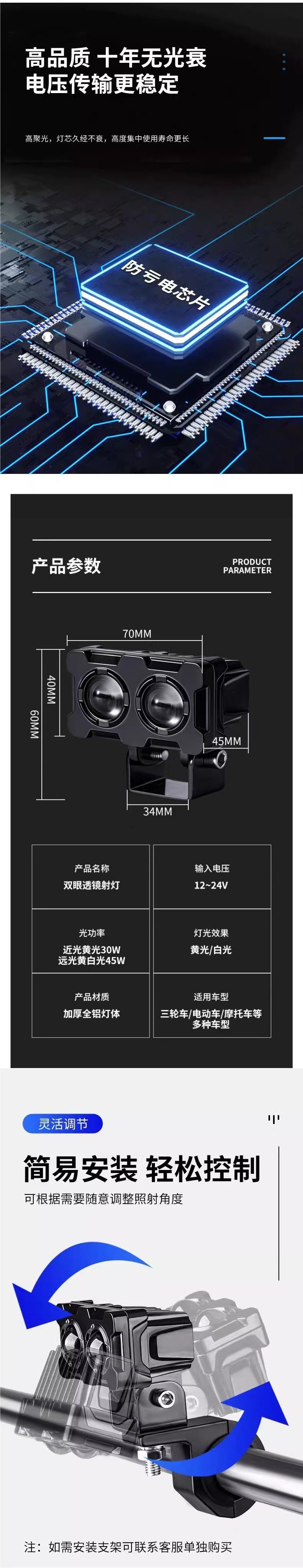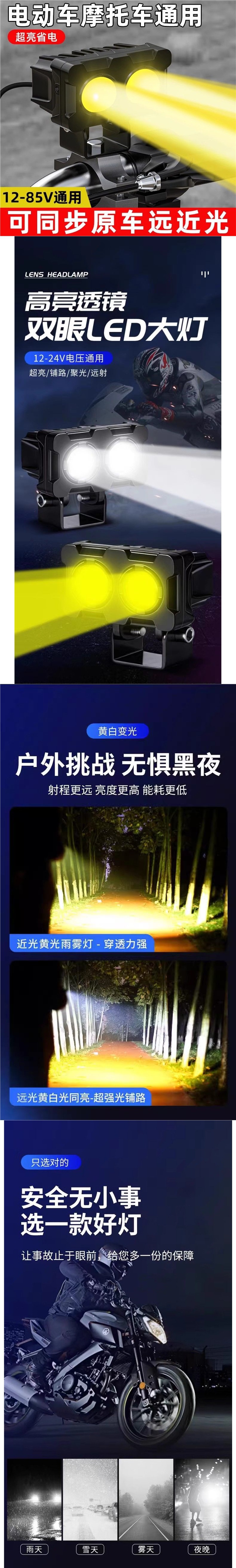 Фары для электрических транспортных средств, супер яркие светодиоды, фары для мотоциклов, дорожные фонари, вспышки для трехколесных электрических транспортных средств