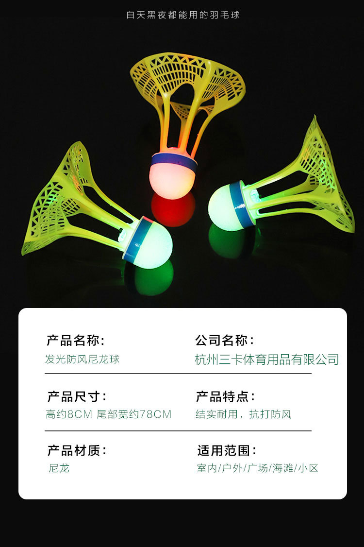 Светящийся ветрозащитный бадминтонный мяч, супер прочный и неразрушимый, наружный флуоресцентный яркий пластиковый нейлоновый мяч с подсветкой
