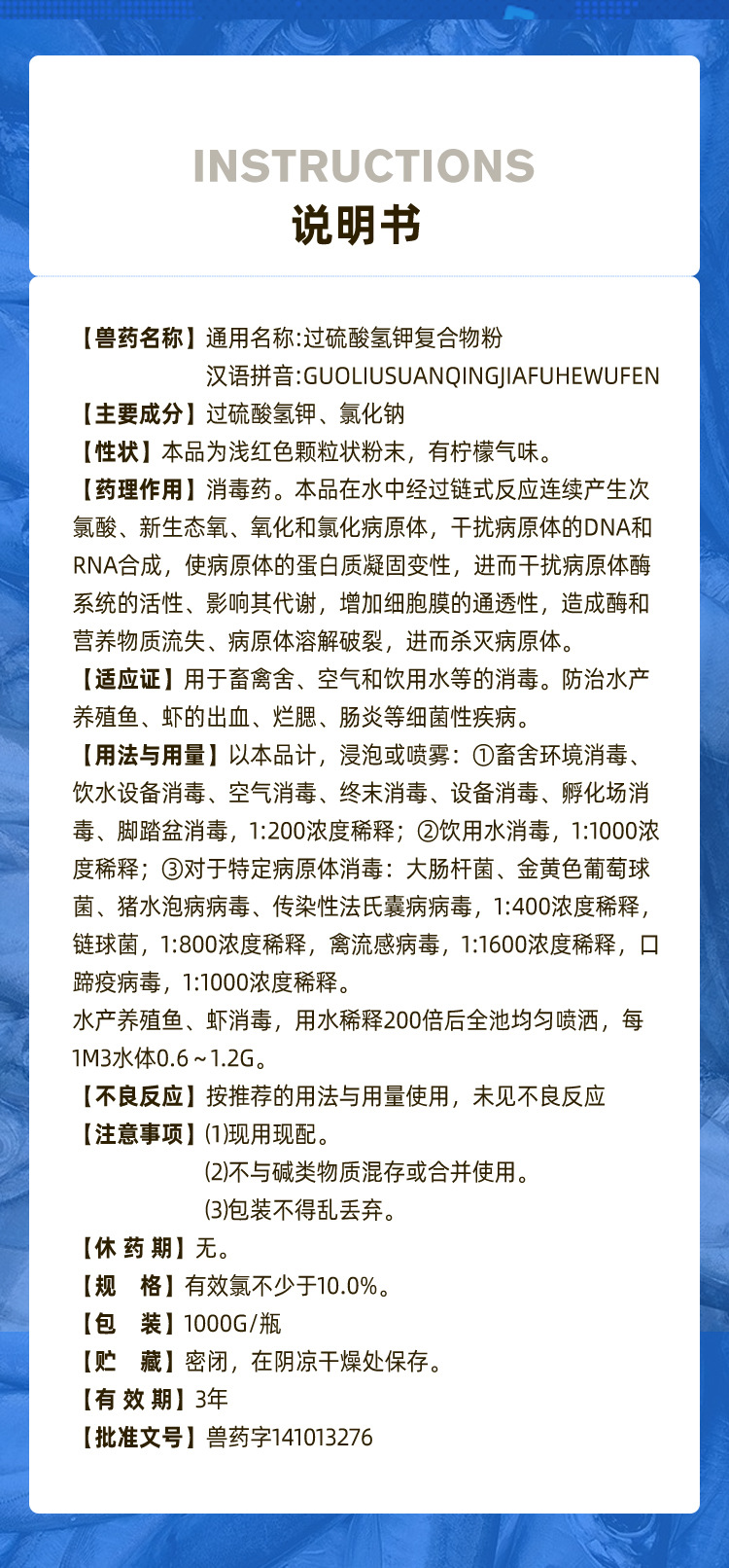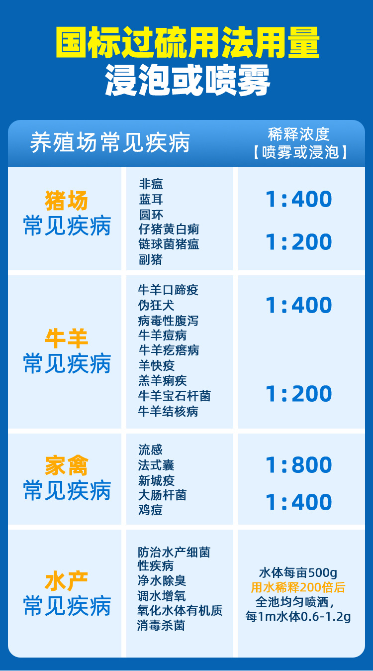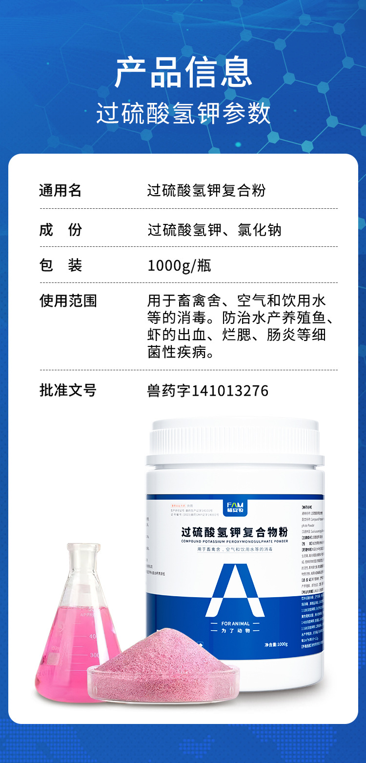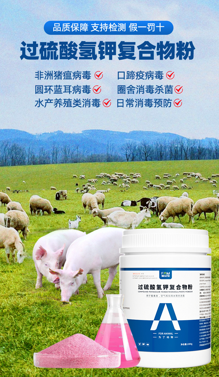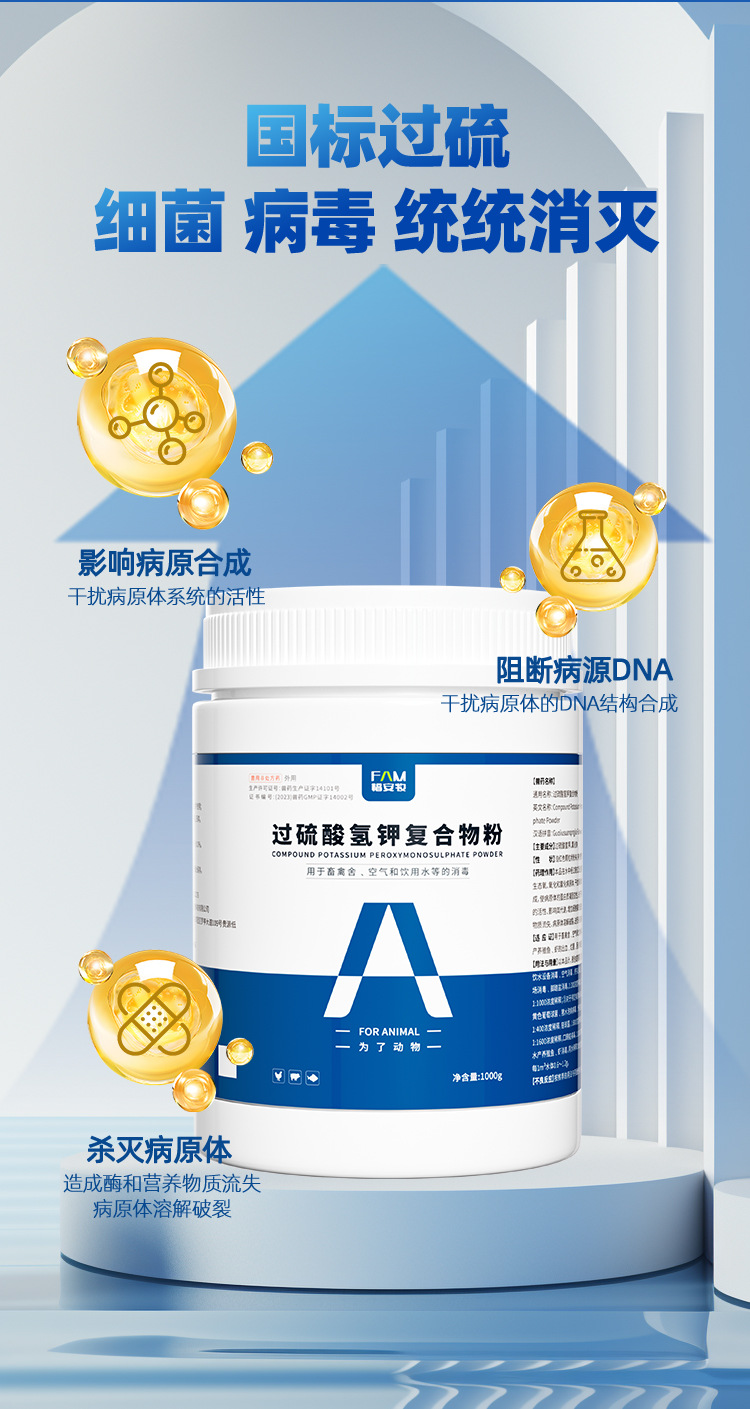 Дезинфицирующее средство на основе персульфата калия для ферм, комплексный порошок для дезинфекции кур, уток и свиней