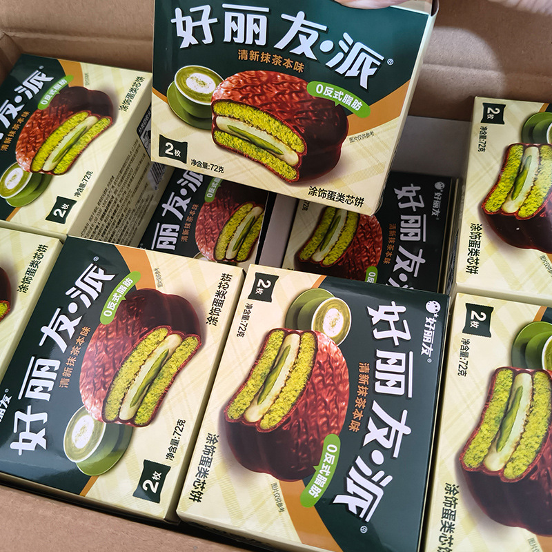 Пирог Орион с шоколадом 2 штуки с начинкой из яичного желтка со вкусом свежего матча, кондитерское изделие для чая