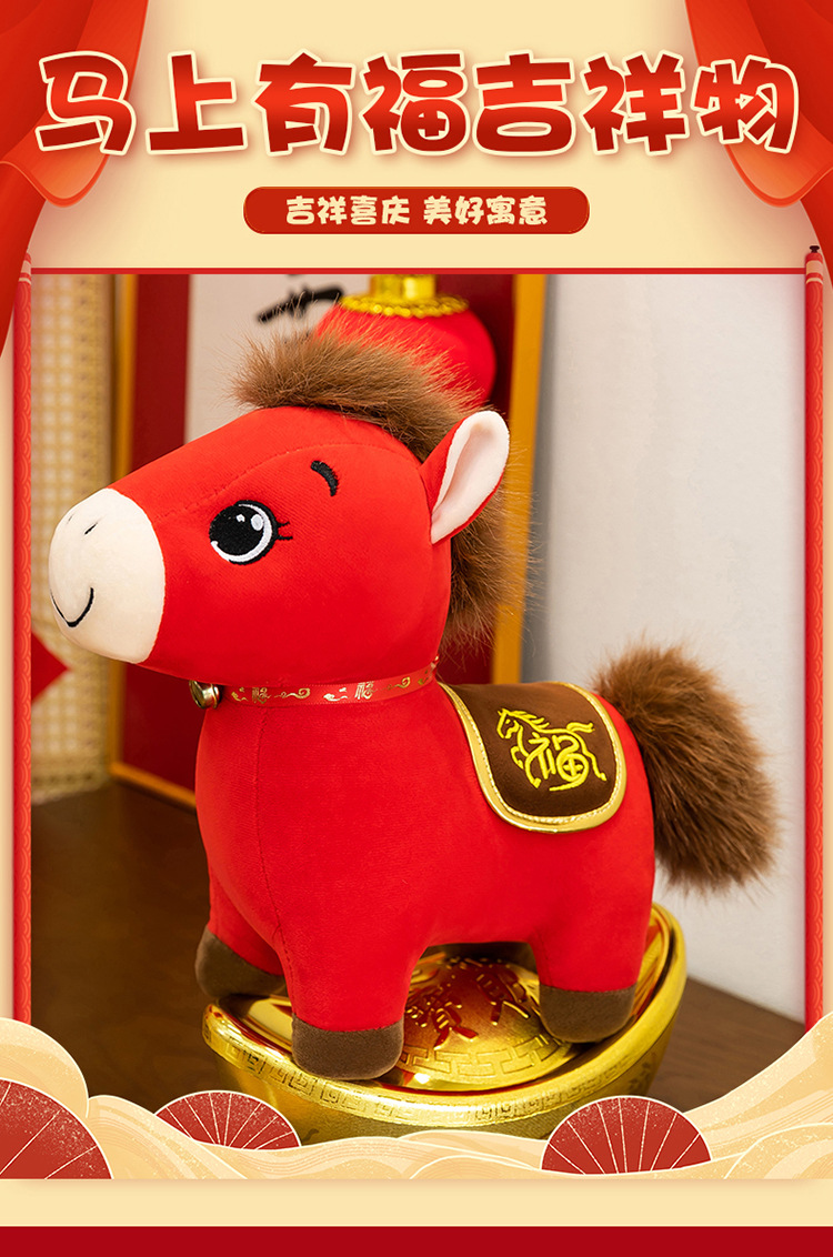 Кукла-талисман года Лошади, плюшевая игрушка пони, китайский стиль, оптовая продажа, кукла зодиака