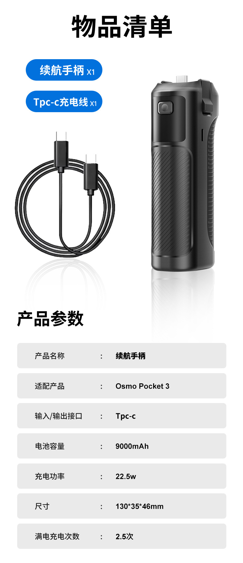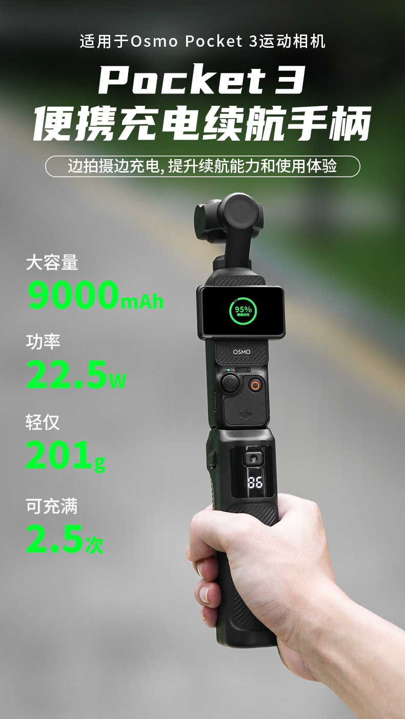 Совместимо с Dji Pocket3, ручка для батареи, мобильный источник питания, ультра-долгое время работы, 9000 мАч, аккумулятор с большой емкостью, аксессуары