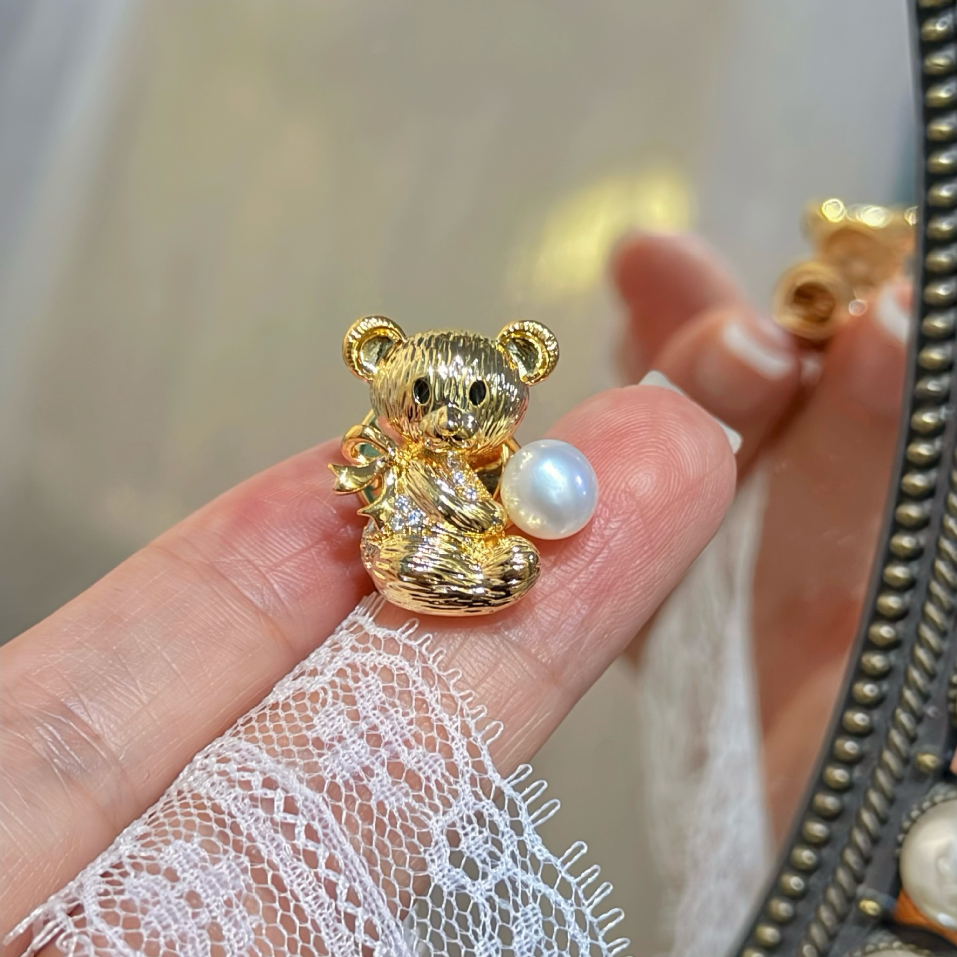 珍珠质量:馒头珠形或圆珠,面无暇(上述可见)