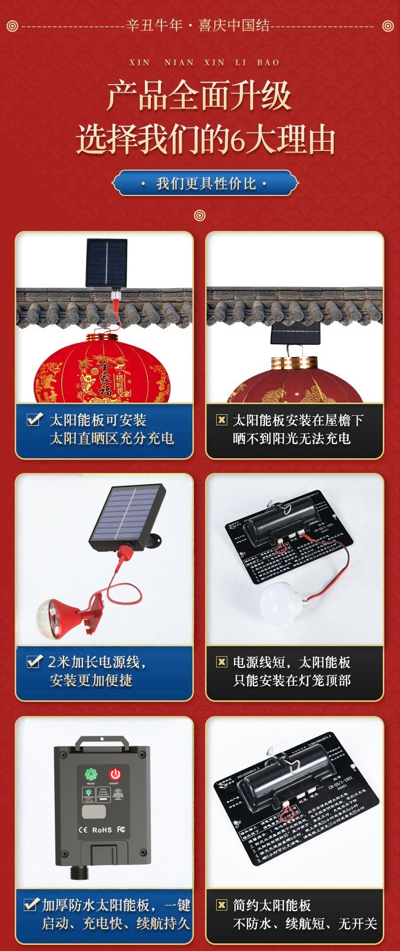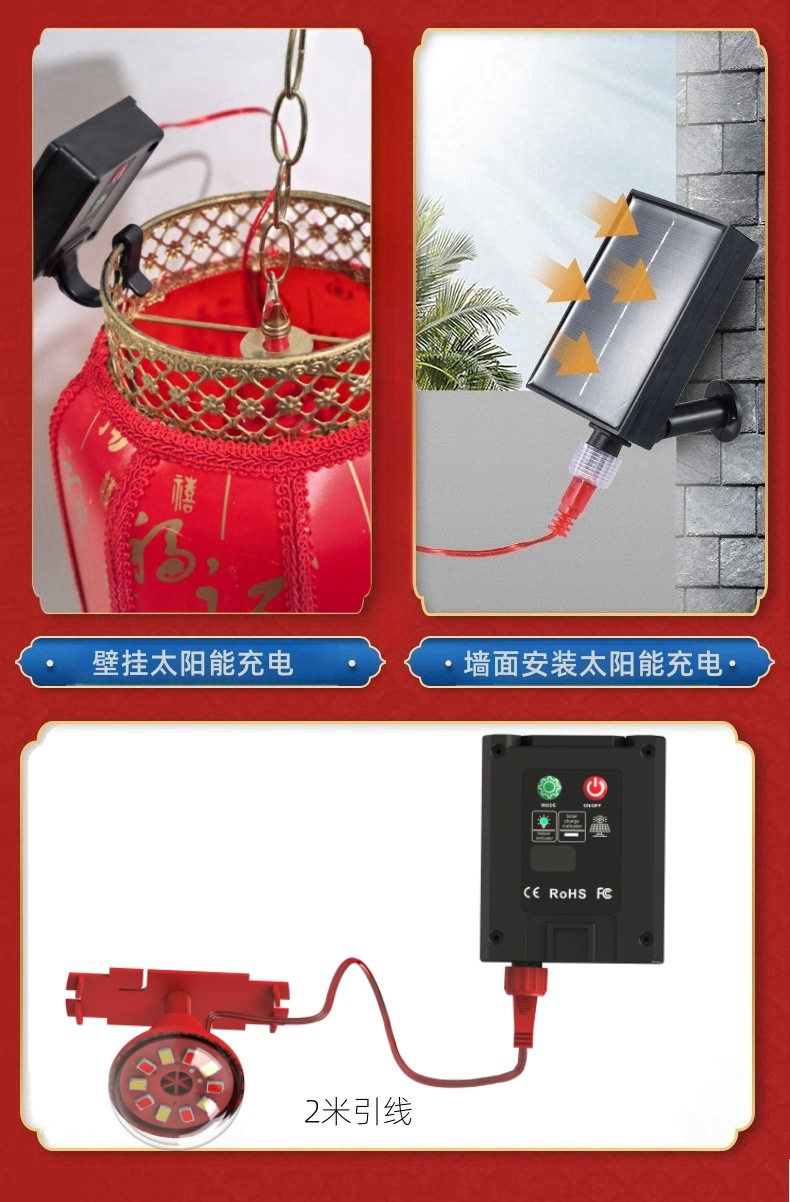 Солнечная люстра с флокированием для внутреннего и наружного декора, праздничный китайский красный фонарь, овечья шерсть, DIY на средину осени