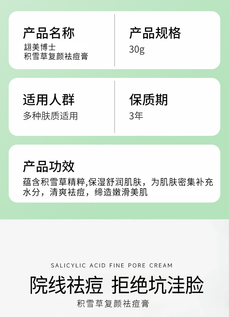 翃美博士积雪草复颜祛痘膏收缩毛孔清洁焕颜涂抹式粉刺闭口控油