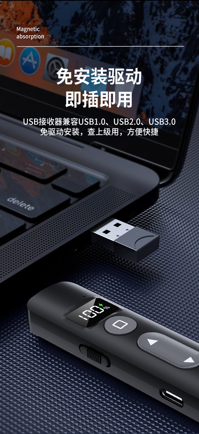Прямые продажи нового многофункционального лазерного пера для переворачивания страниц, перезаряжаемая версия, пульт дистанционного управления для демонстрации Ppt, мультимедиа