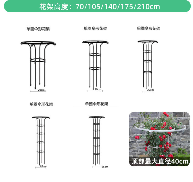 Цветочная стойка в форме зонта, каркас для вьющихся растений, стойка для роз, каркас для клематисов, уличный каркас для роз из железа