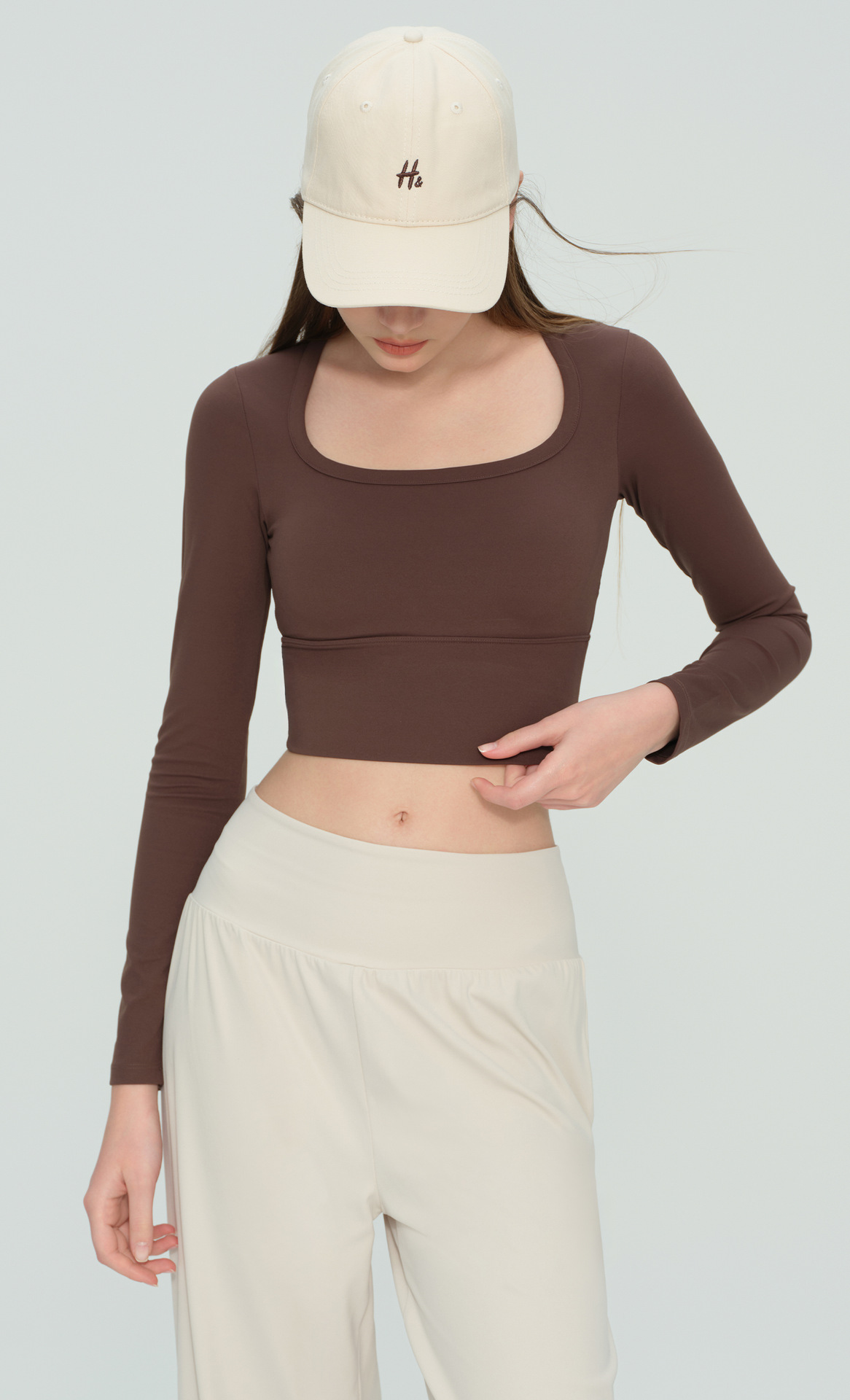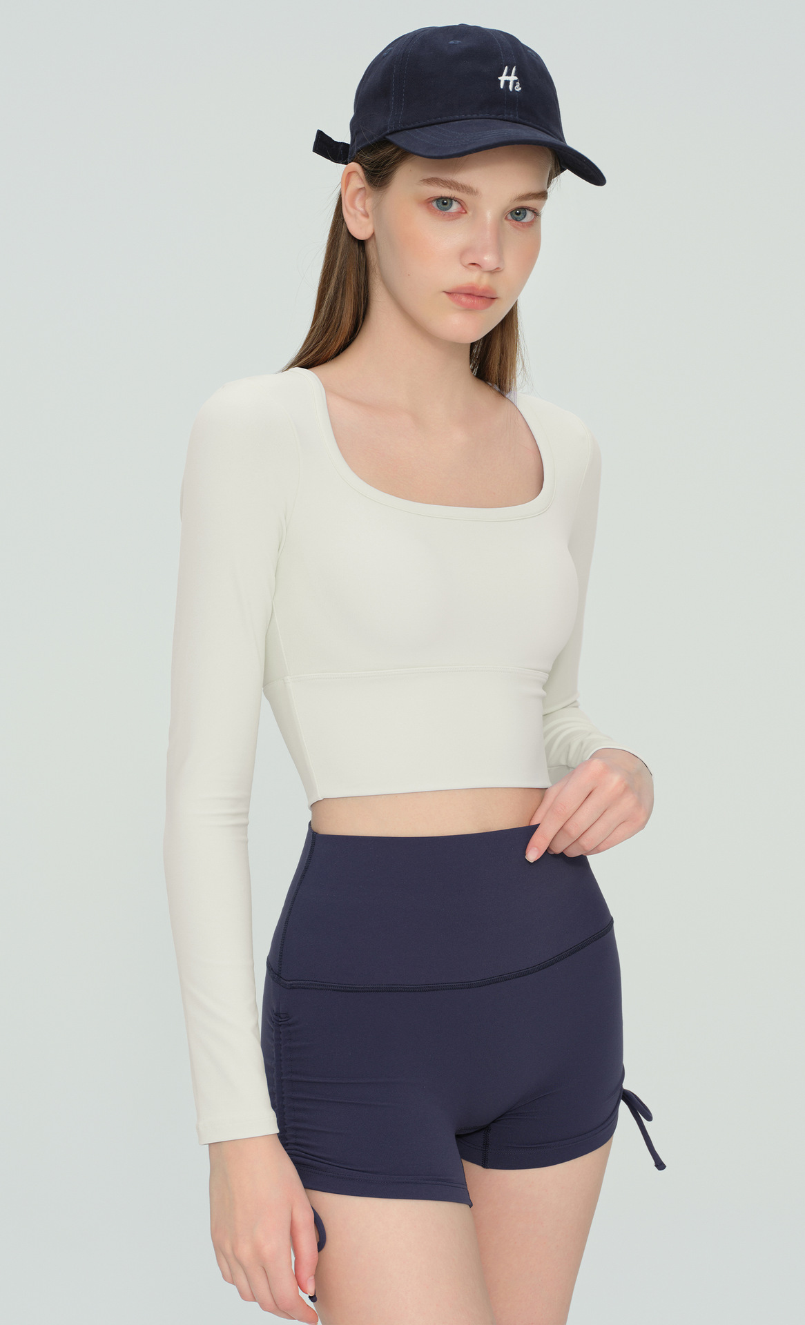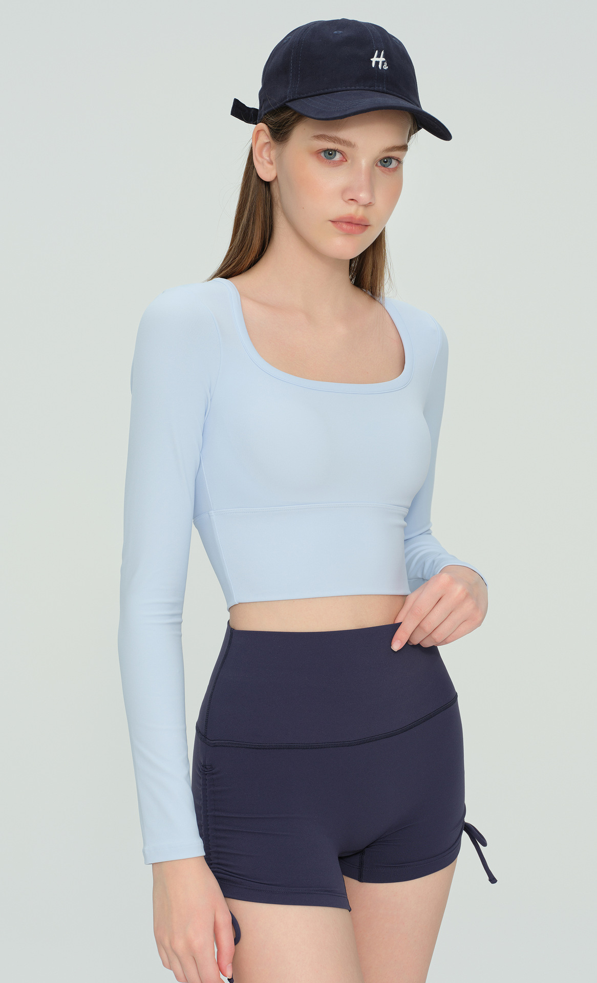 Долгий рукав для йоги осень-зима с чашечками, фиксированная чашка, высококачественная спортивная одежда с U-образным вырезом