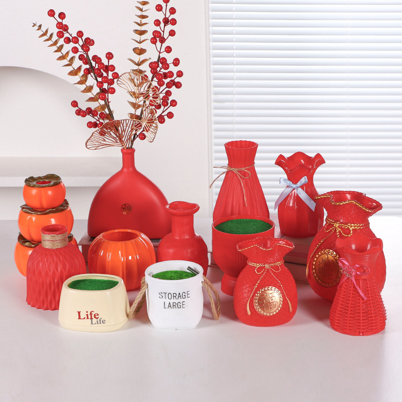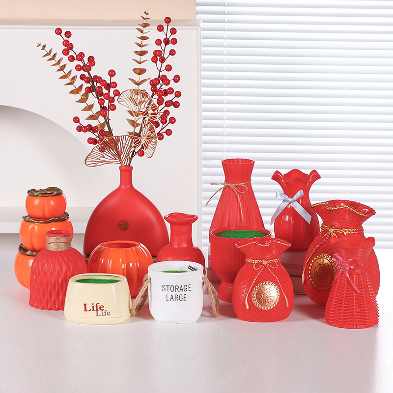 Имитированная керамическая пластиковая ваза Shishi Ruyi, устойчивая к падению, искусственные цветы, новогодний горшок, красный фруктовый мешок, высушенные цветы для свадьбы