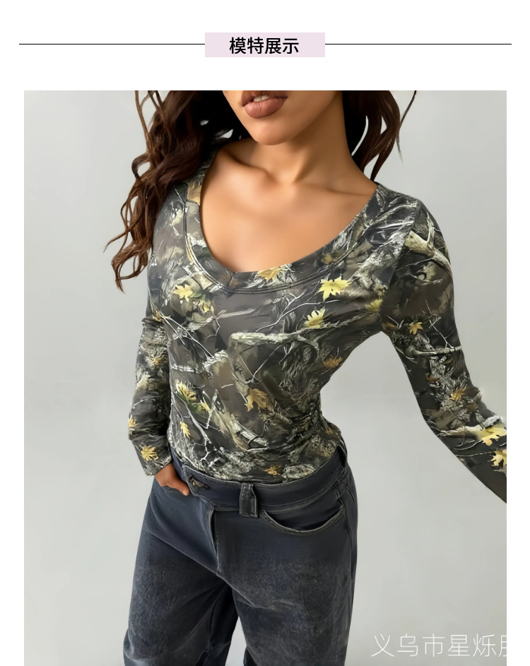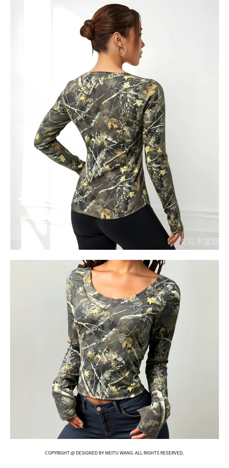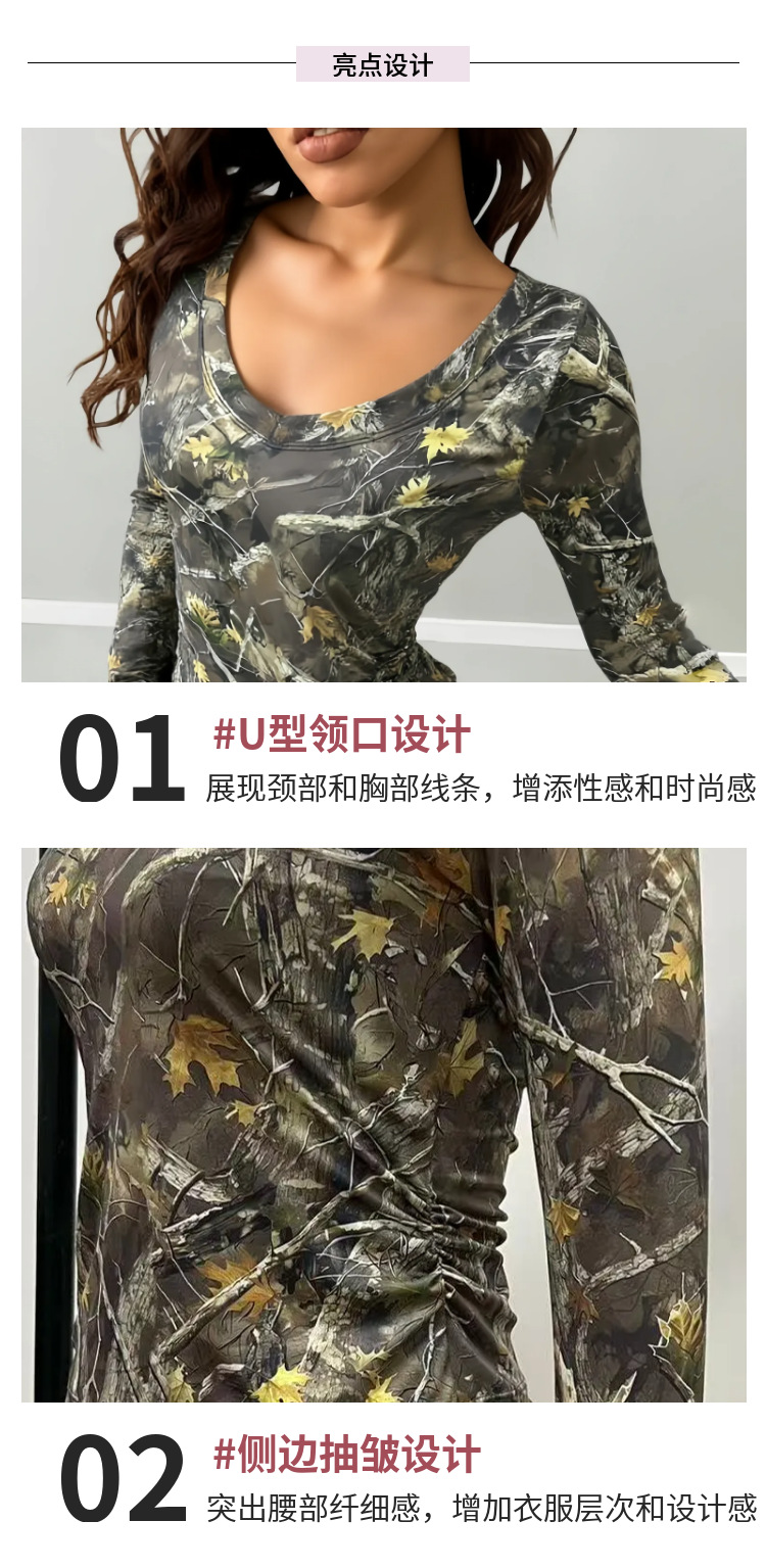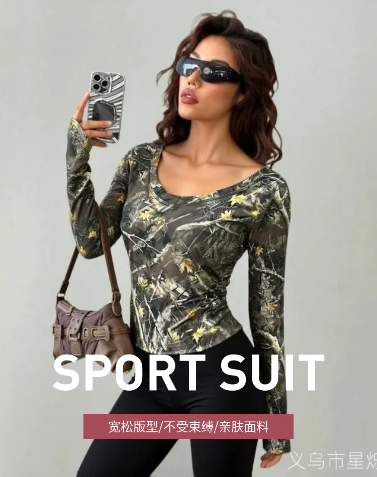 Европейская и американская кросс-бодрствующая осенне-зимняя новая ретро футболка с принтом кленового листа, боковыми складками и утягивающим поясом для йоги