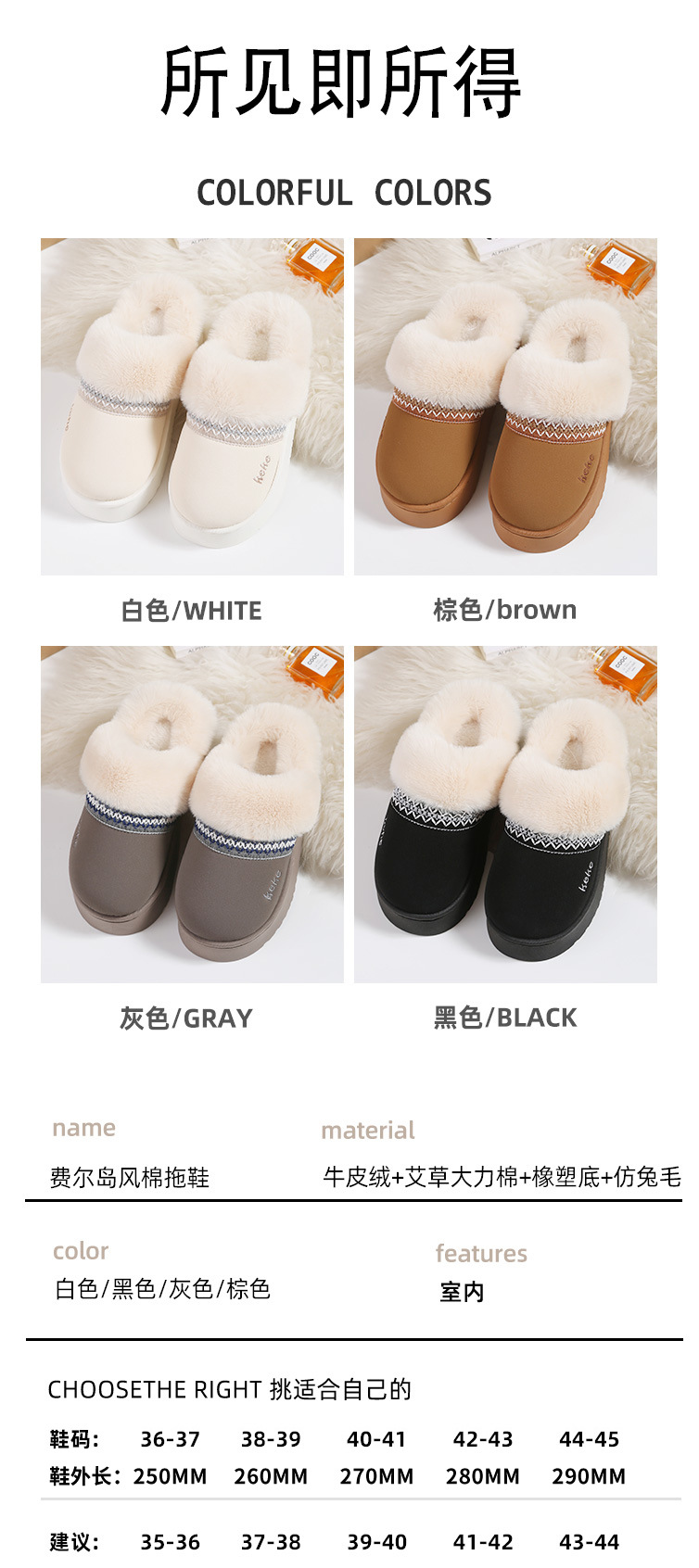 Тапочки в стиле Fair Isle зимние новые удобные с толстой подошвой, с вышивкой на носке, кросс-бодерные большие размеры теплые снежные ботинки для женщин