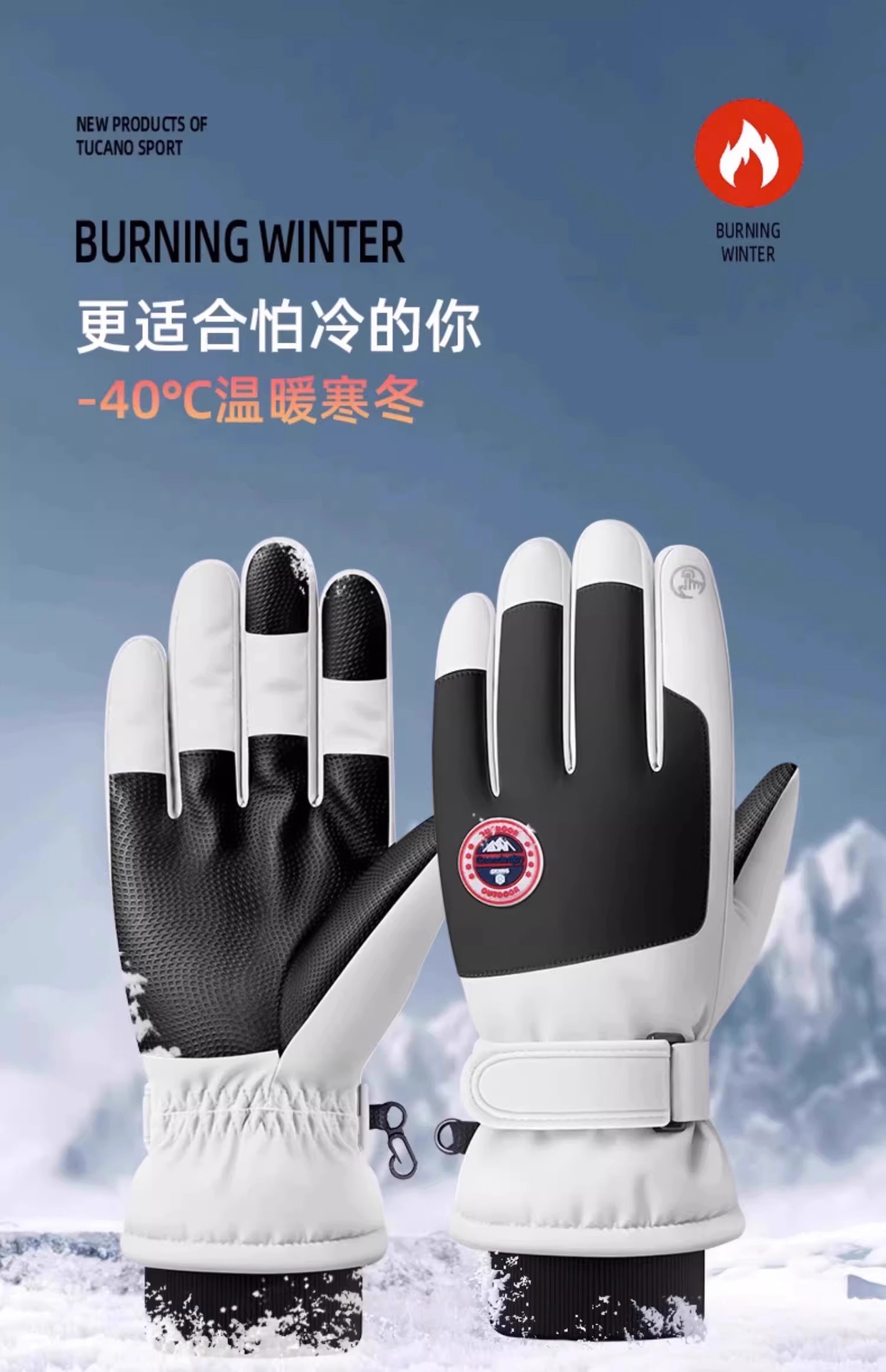 Лыжные перчатки для уличного велоспорта, ветро- и водонепроницаемые, для мужчин и женщин, с флисовой подкладкой, утолщенные, теплые, с сенсорным экраном, защитные от холода и противоскользящие