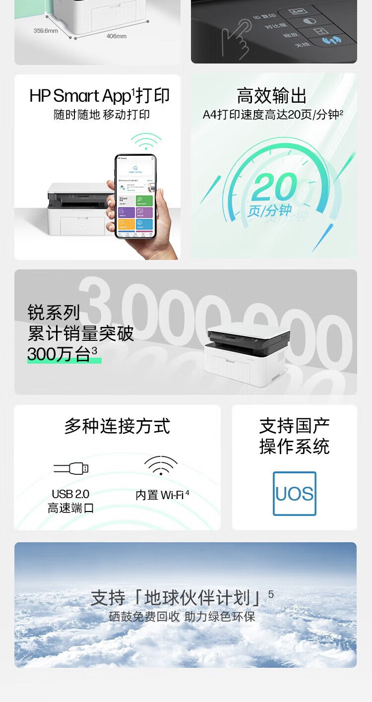 Лазерный принтер Hp 1188W/A 115W офисная печать копирование сканирование маленький домашний черно-белый многофункциональный