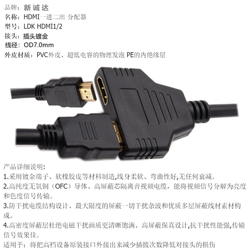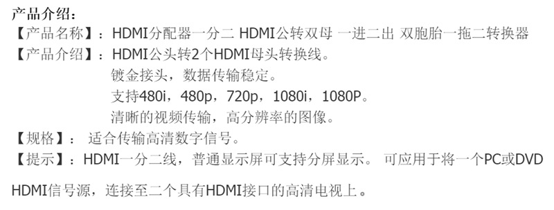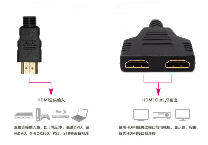 HDMI сплиттер 1 на 2 один вход два выхода HDMI кабель адаптер сплиттер видеокабель