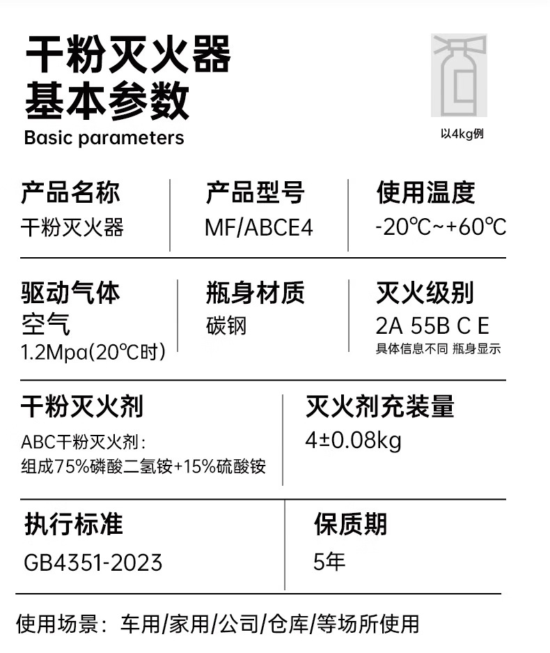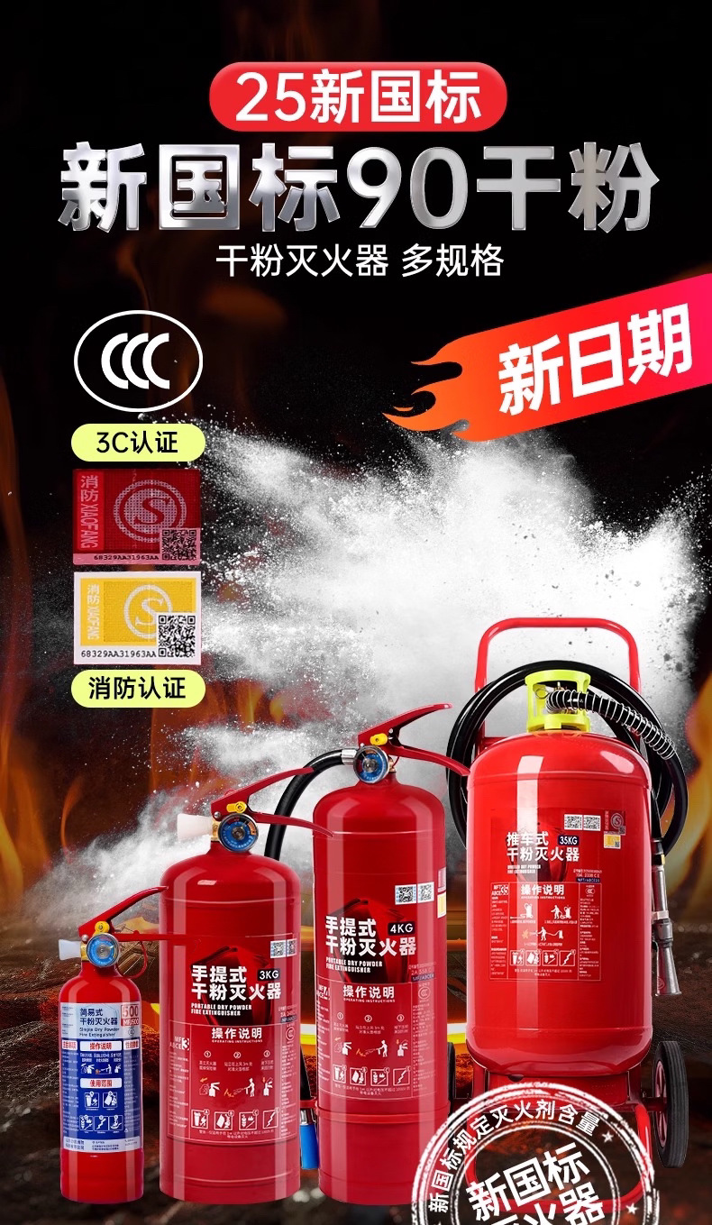 Огнетушитель 4кг по национальному стандарту 2025 года, сертифицированный 3C, 1/2/3/5кг, для дома и коммерческого использования