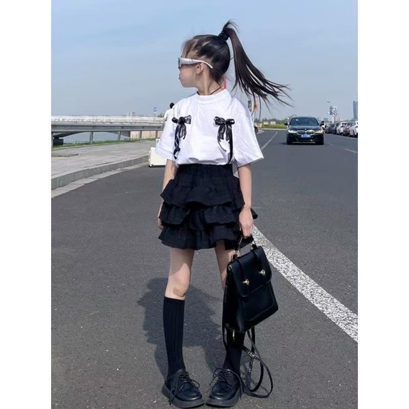 Новое летнее платье для девочек 2025 Корейский стиль Свободная юбка с высокой талией Модная юбка-торт Короткая юбка