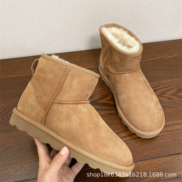 Сапоги Sangpo для женщин, кожаные и меховые, классический новый стиль, длинные, утепленные флисовые, утолщенные, теплые шерстяные хлопковые туфли, зимние ботинки