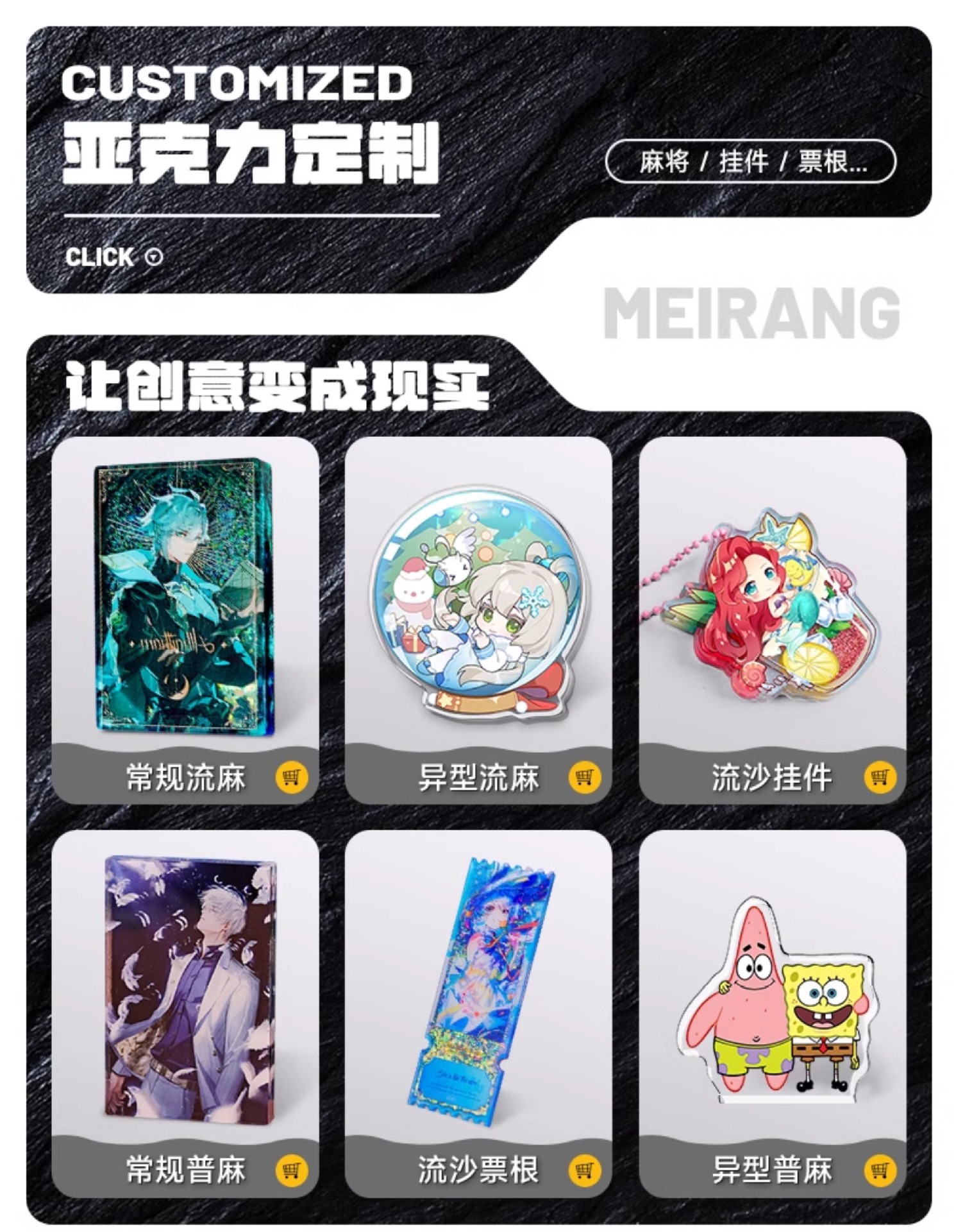 ![]() | Acrylic animation peripheral customization | ¥0.08 / ≈ 1 ₽ | 99899 | 6098892602378 | |
