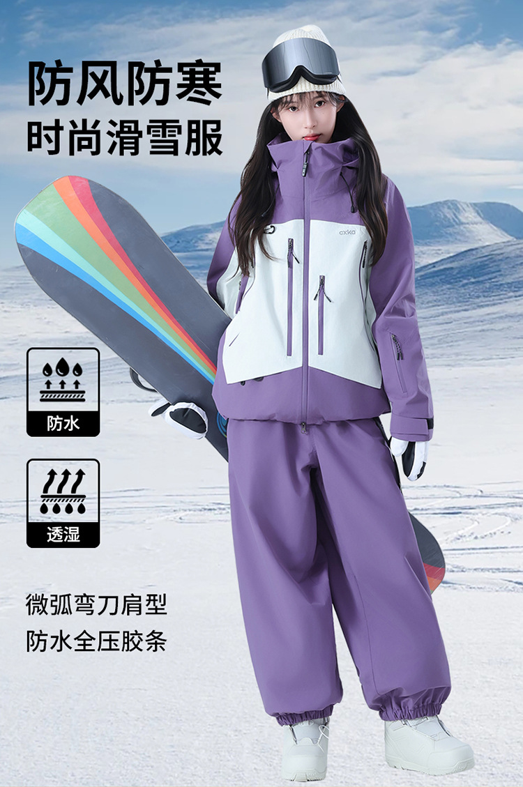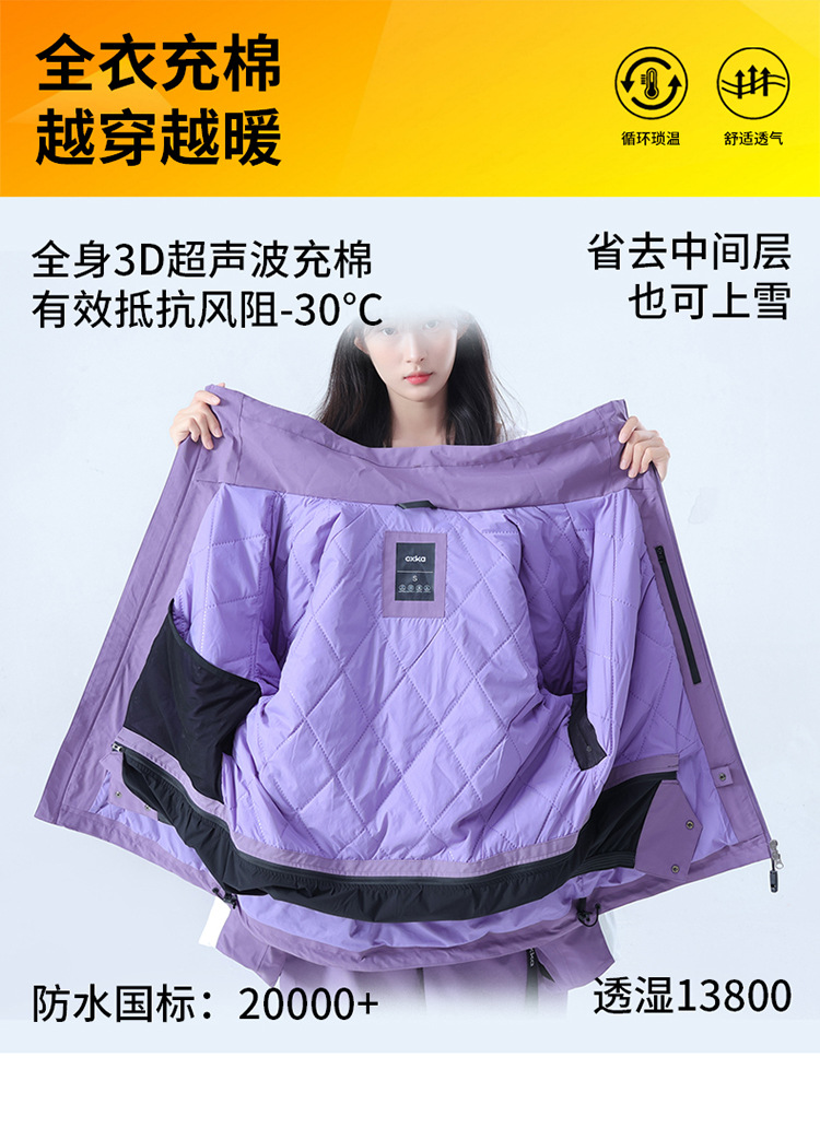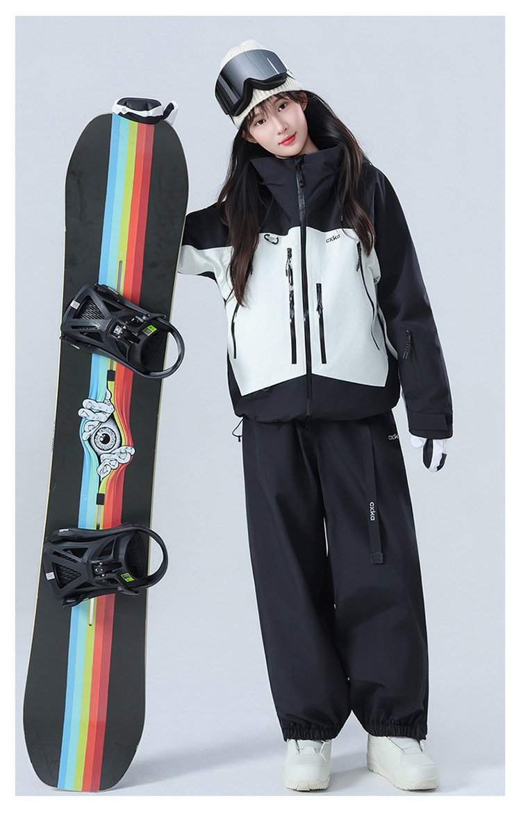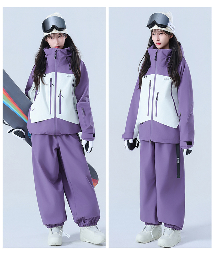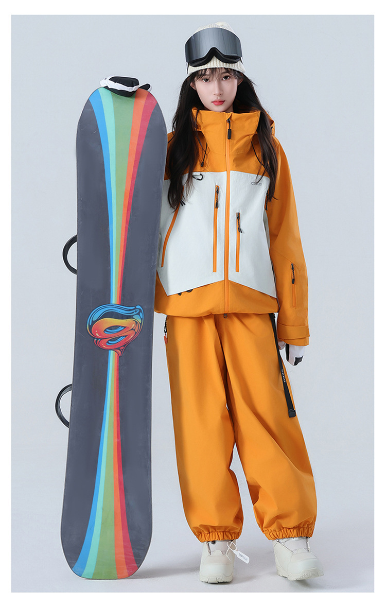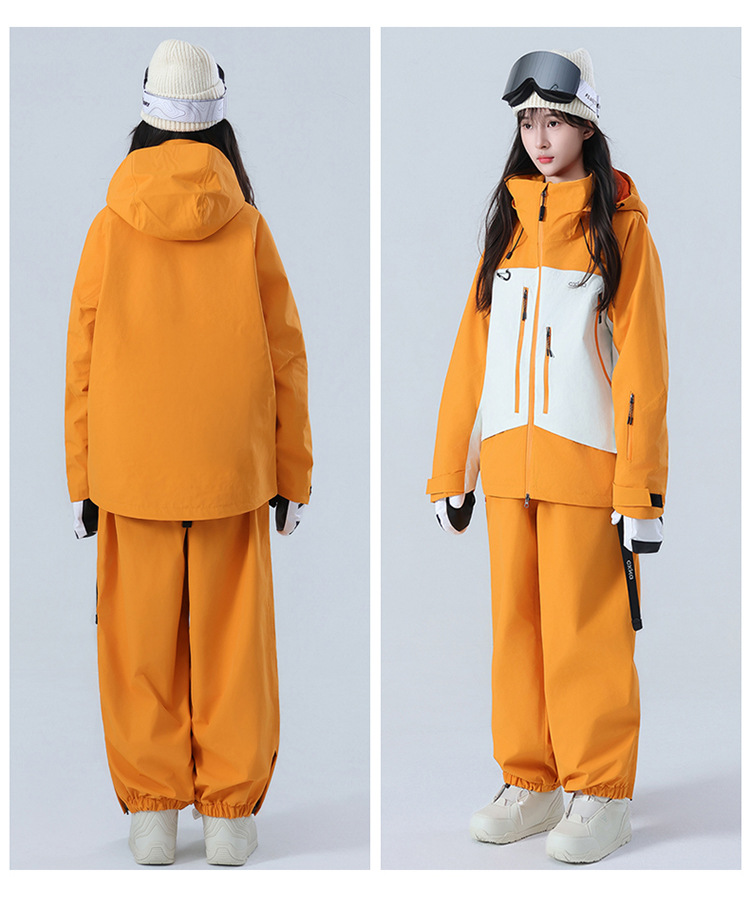 Комплект лыжного костюма для женщин и мужчин, водонепроницаемый и утолщенный профессиональный зимний костюм верх и брюки комплект 3L цветовая комбинация