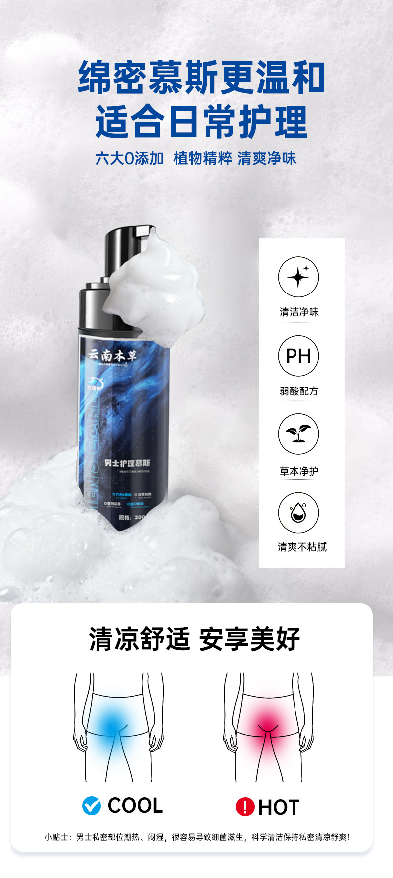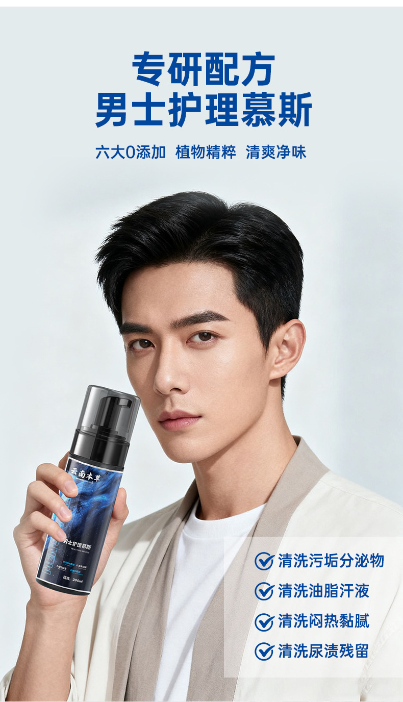 Очищающая жидкость для ухода за интимными частями тела мужчин Yunnan Herbal, гель для душа с ежедневным подавлением