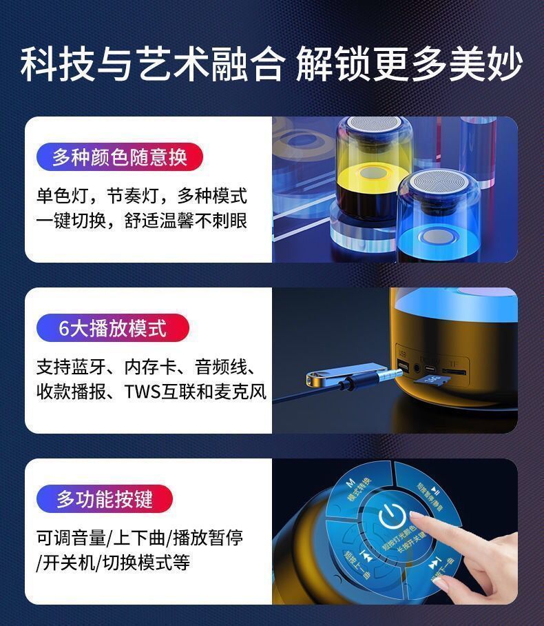 Интернет-звезда Ai Умный Bluetooth динамик Цветные огни Сабвуфер Высокий объем Прозрачный светящийся свет с изменением цвета Подарок