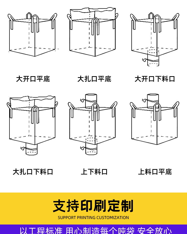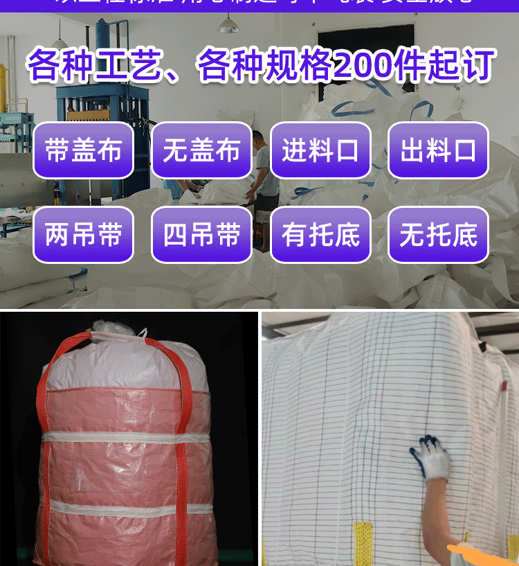Порт погрузки и разгрузки Гуандун, грузоподъемность 1 тонна, 2 тонны, 4+2 стропы, толстый контейнерный мешок, промышленный мешок, тонна