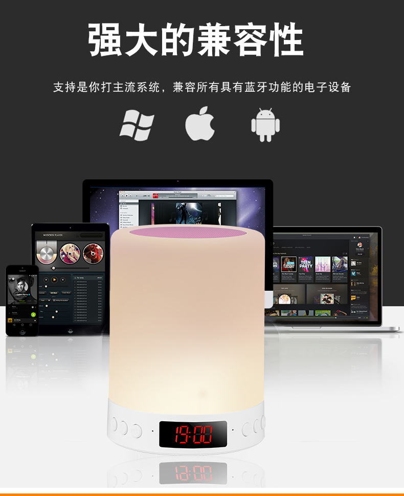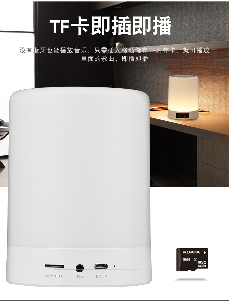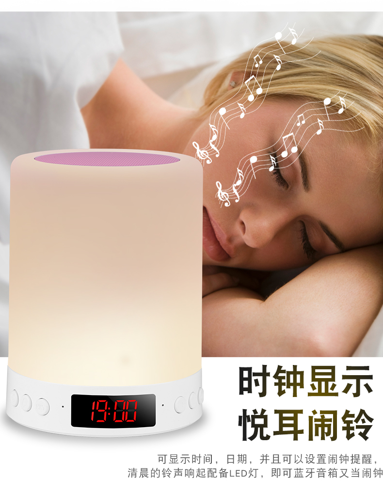 Цветной ночной свет Беспроводной Bluetooth аудио Зарядка Спальня Сон Настольная лампа Динамик Музыкальный будильник Атмосферный свет с изменением цвета