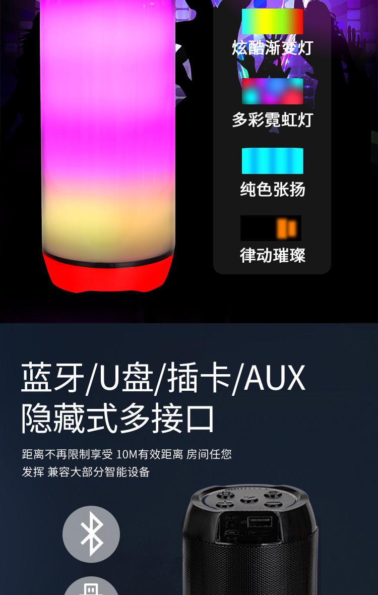 Цветной ритмический мигающий беспроводной Bluetooth динамик Карточный подключаемый Портативный цветной аудио Высококачественный сабвуфер Высокий объем