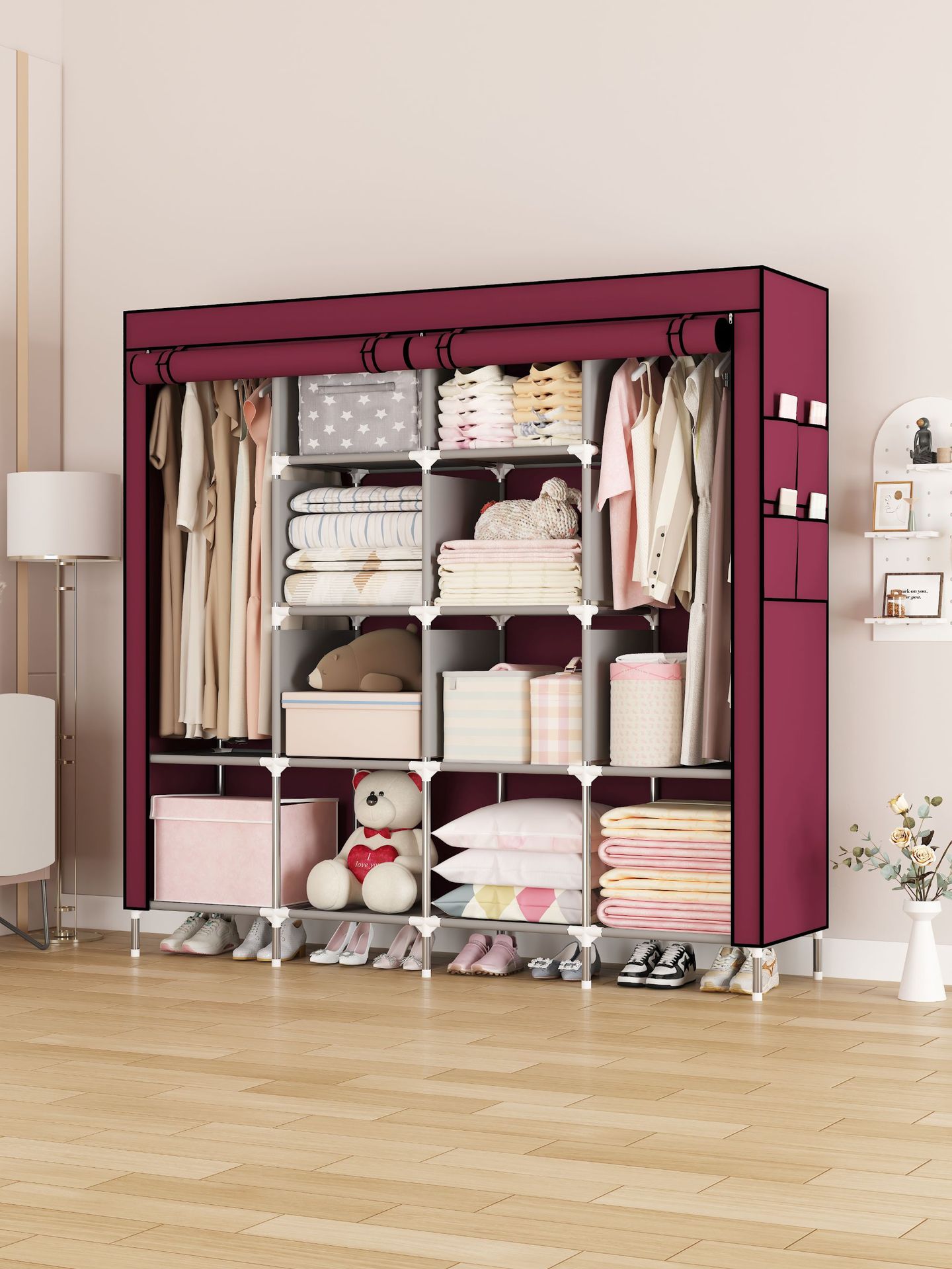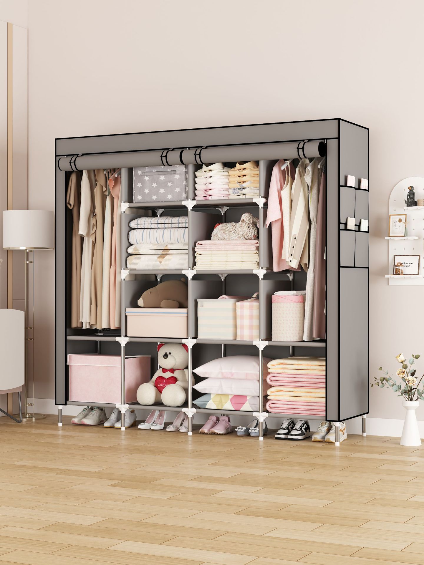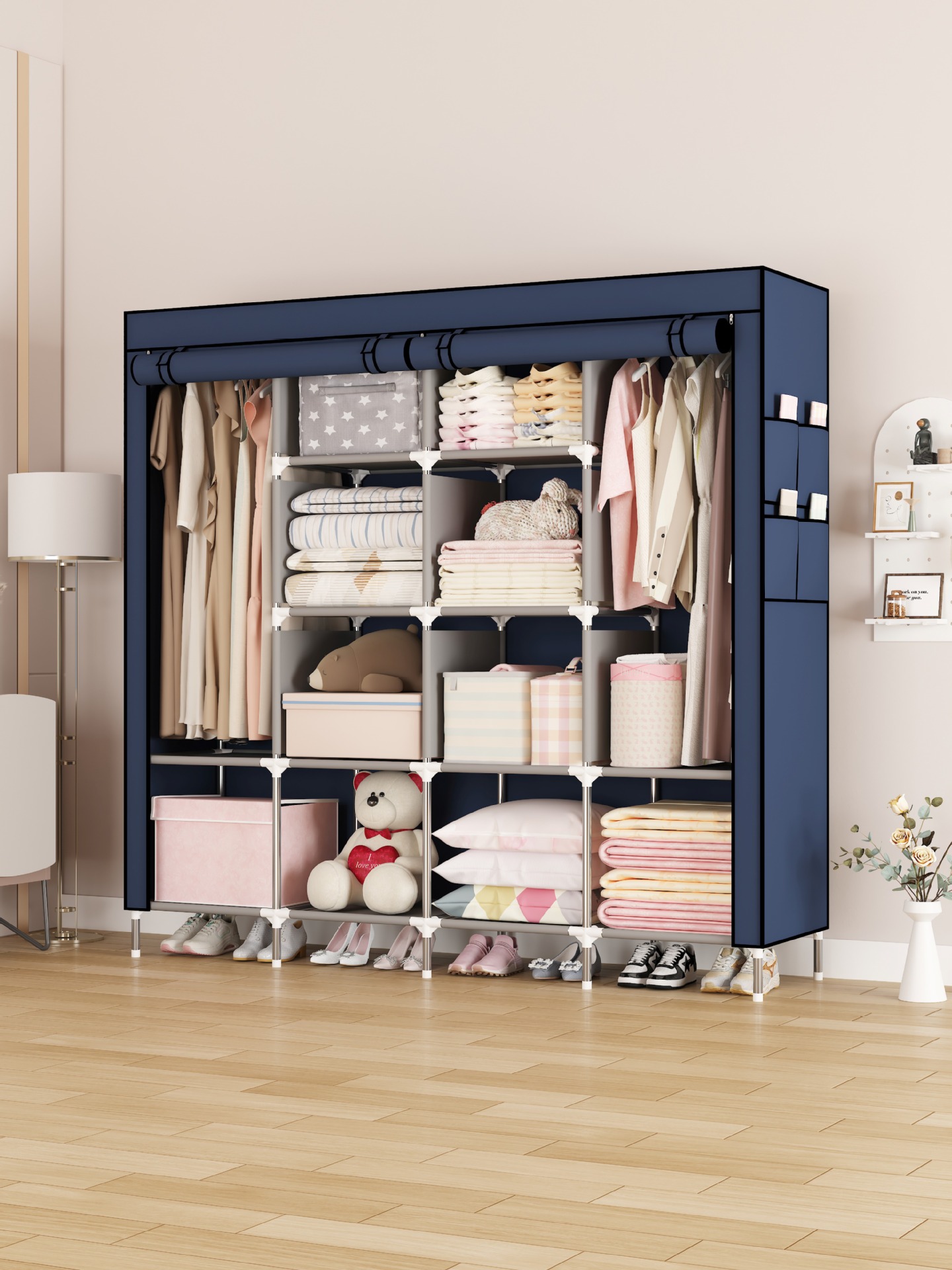 Простой шкаф из ткани, утолщенные стальные трубы, пылезащитный шкаф для аренды, большой объем, шкаф для общежития из нетканого материала