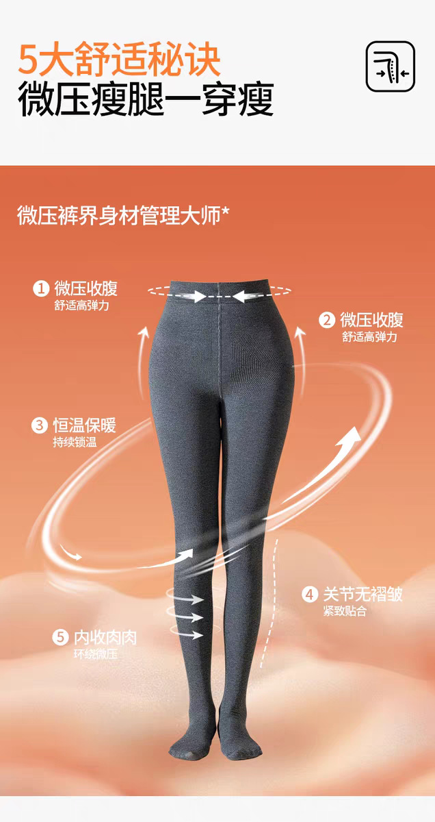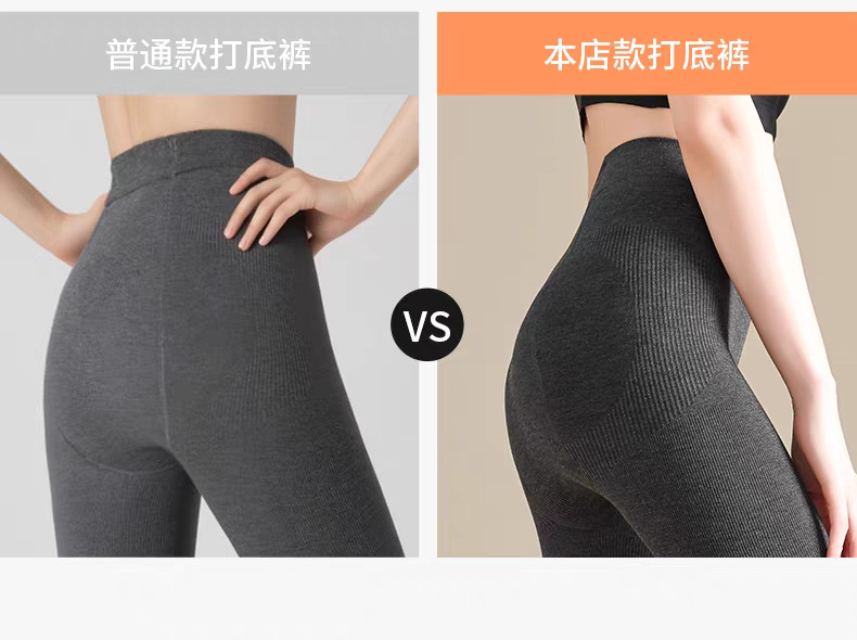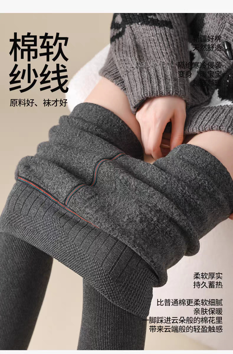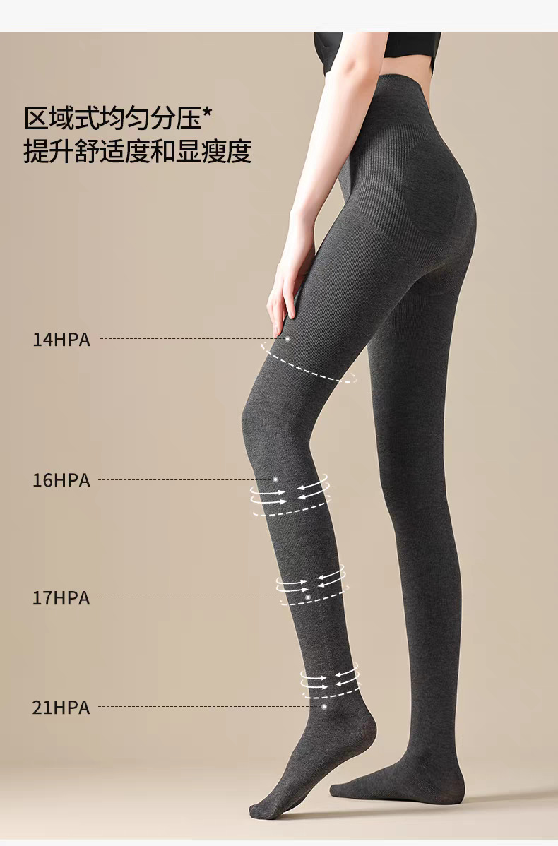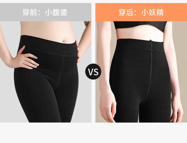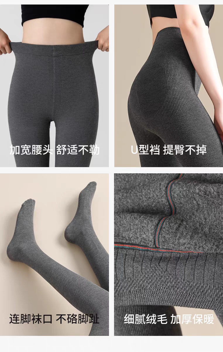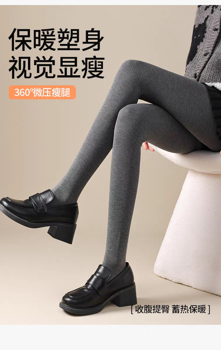 灰色打底裤袜竖条纹微压加绒打底裤女外穿秋冬加厚保暖提臀连裤袜