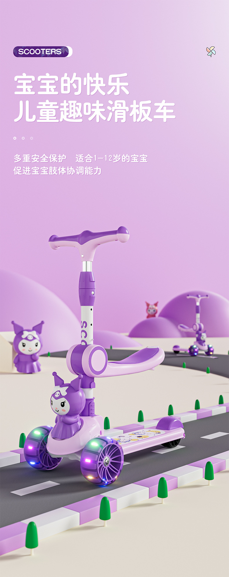 Самокат для детей 2-6-10 лет, трехв одном, для мальчиков и девочек, музыкальный самокат с подсветкой