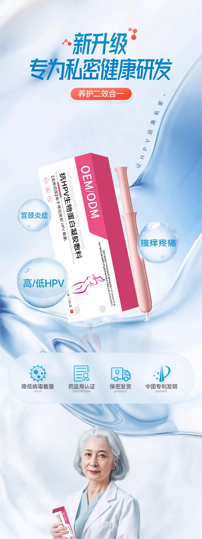 ОЕМ/ОДМ/Иностранная торговля Кастомизация Бесплатный дизайн и пробный образец Анти-ВПЧ Обезболивающий вагинит Биопротеиновая функциональная повязка