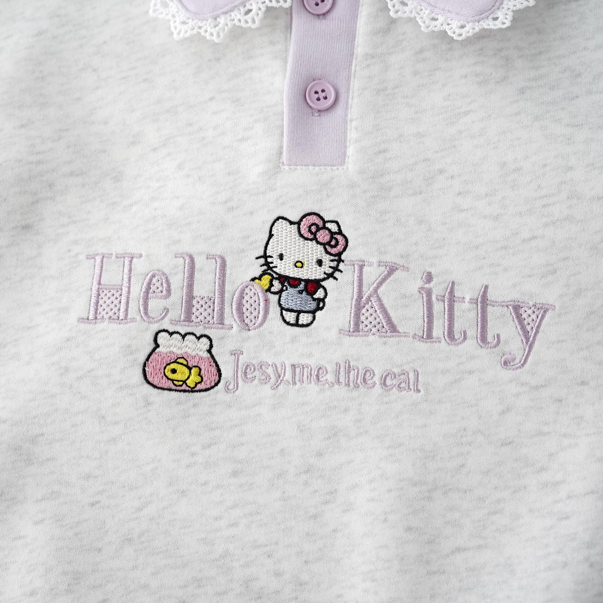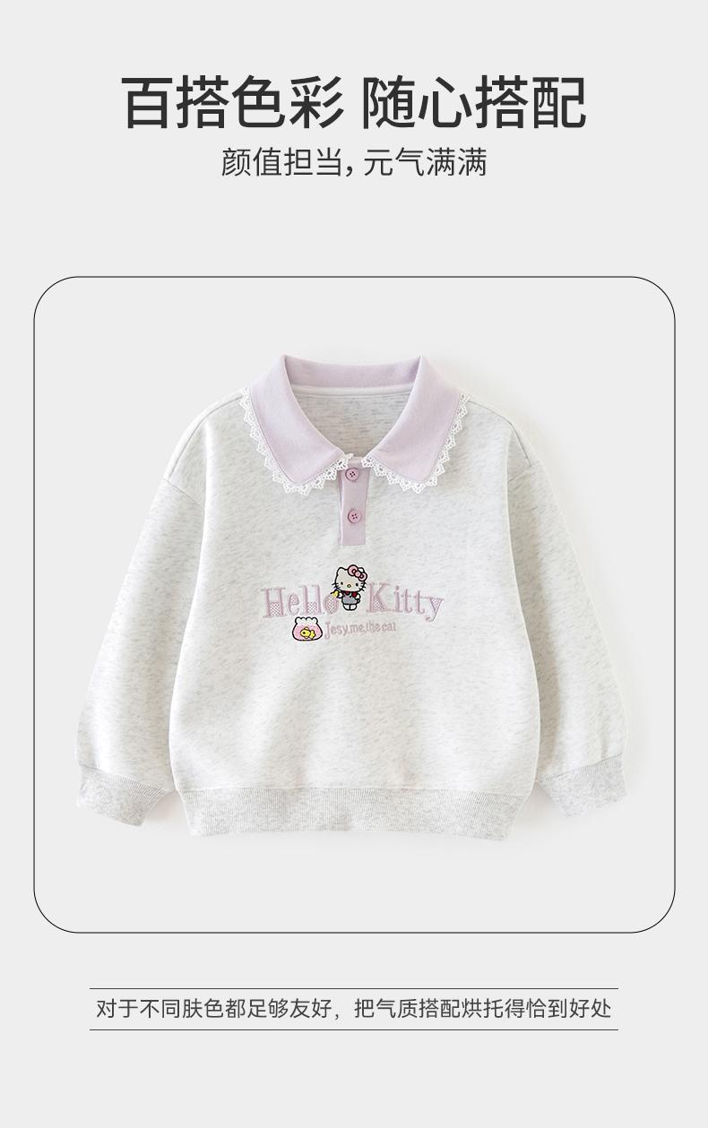 2025 Новая осенняя толстовка для девочек с воротником-поло, вышивкой Kt Cat, модный семейный топ, длинные рукава