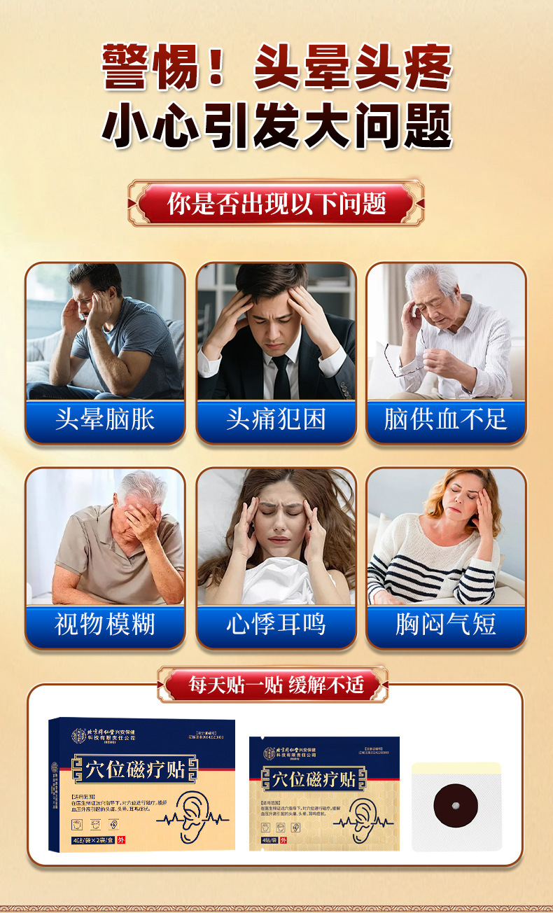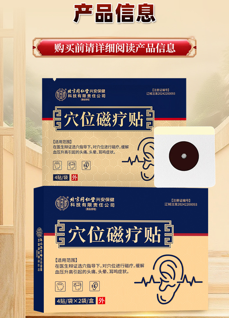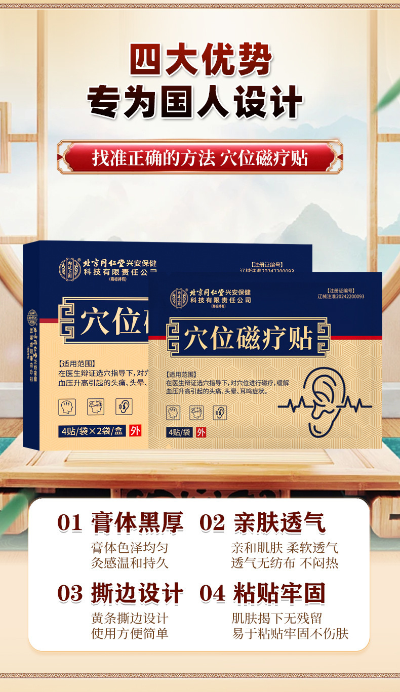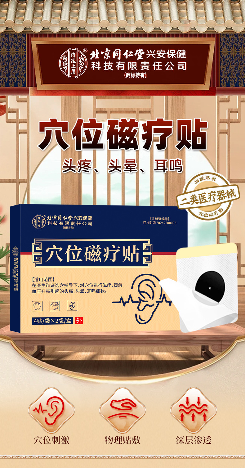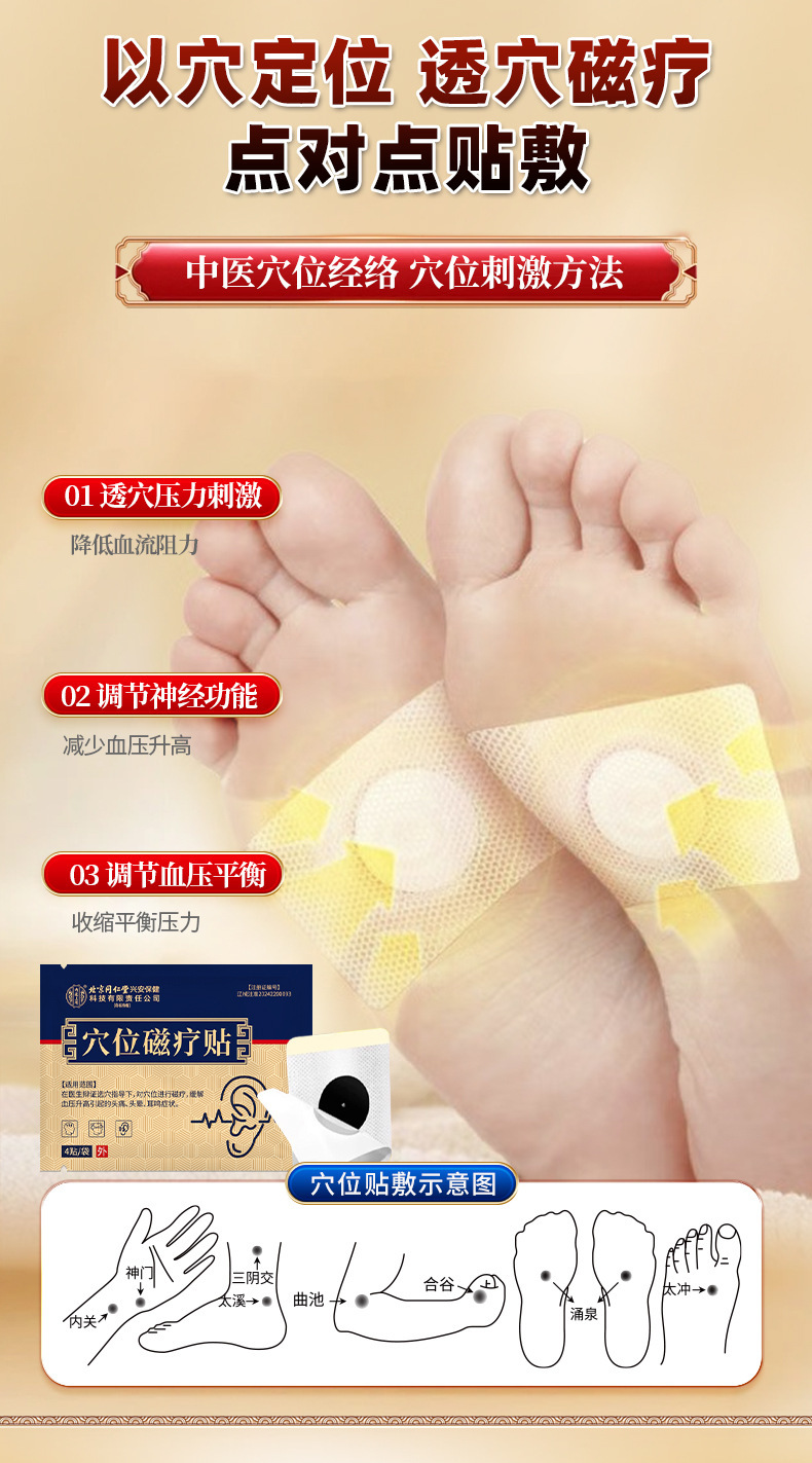 Пластыри магнитной терапии Beijing Tongrentang для лечения высокого давления, тиннитуса и головокружения. Оптовая продажа от производителя