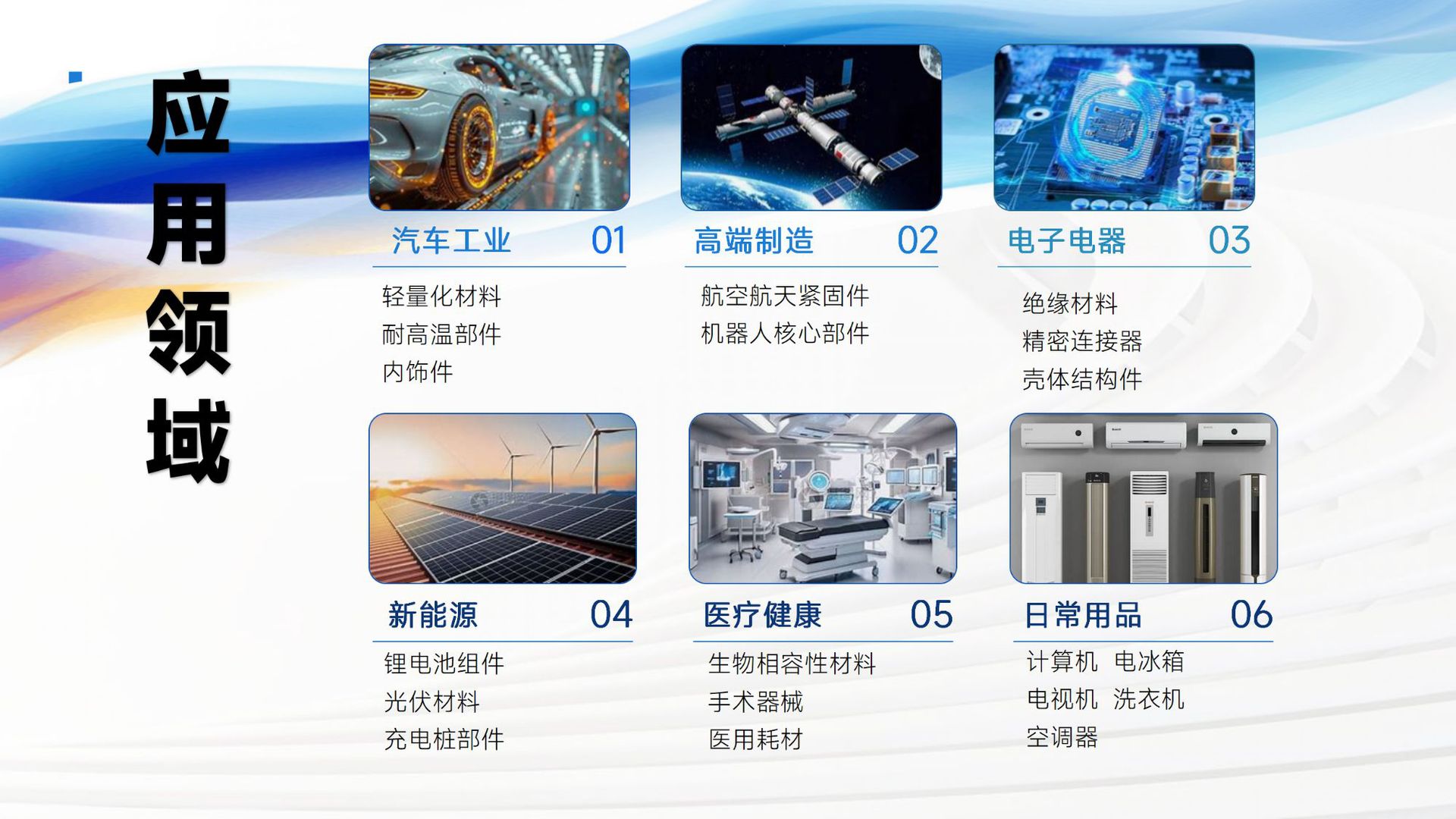 Использование материала Automotive components industrial applications sporting goods applications
