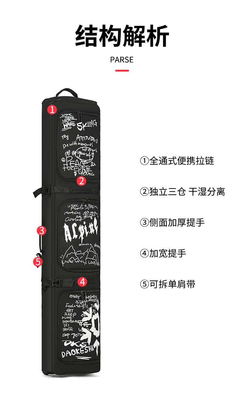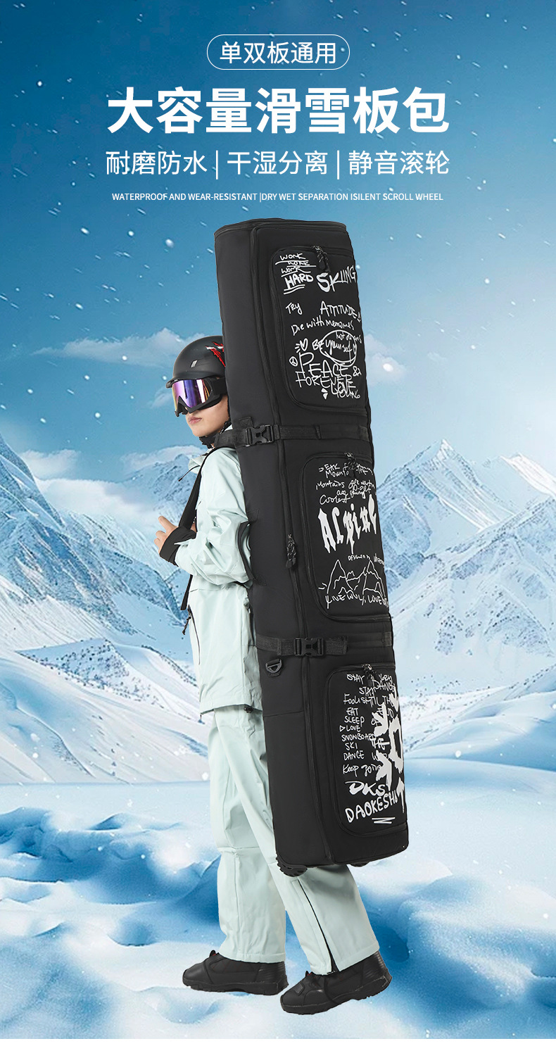Новая водонепроницаемая сумка для лыж, сумка для одной доски, сумка для двух досок с колесами, три отсека, разделение на сухое и мокрое, большая емкость, можно сдавать в багаж