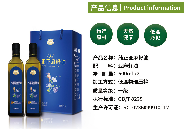 Yuedu Shoufang/Прямые поставки чистого льняного масла, масло первого сорта холодного отжима, пищевое, набор из двух бутылок в подарочной коробке