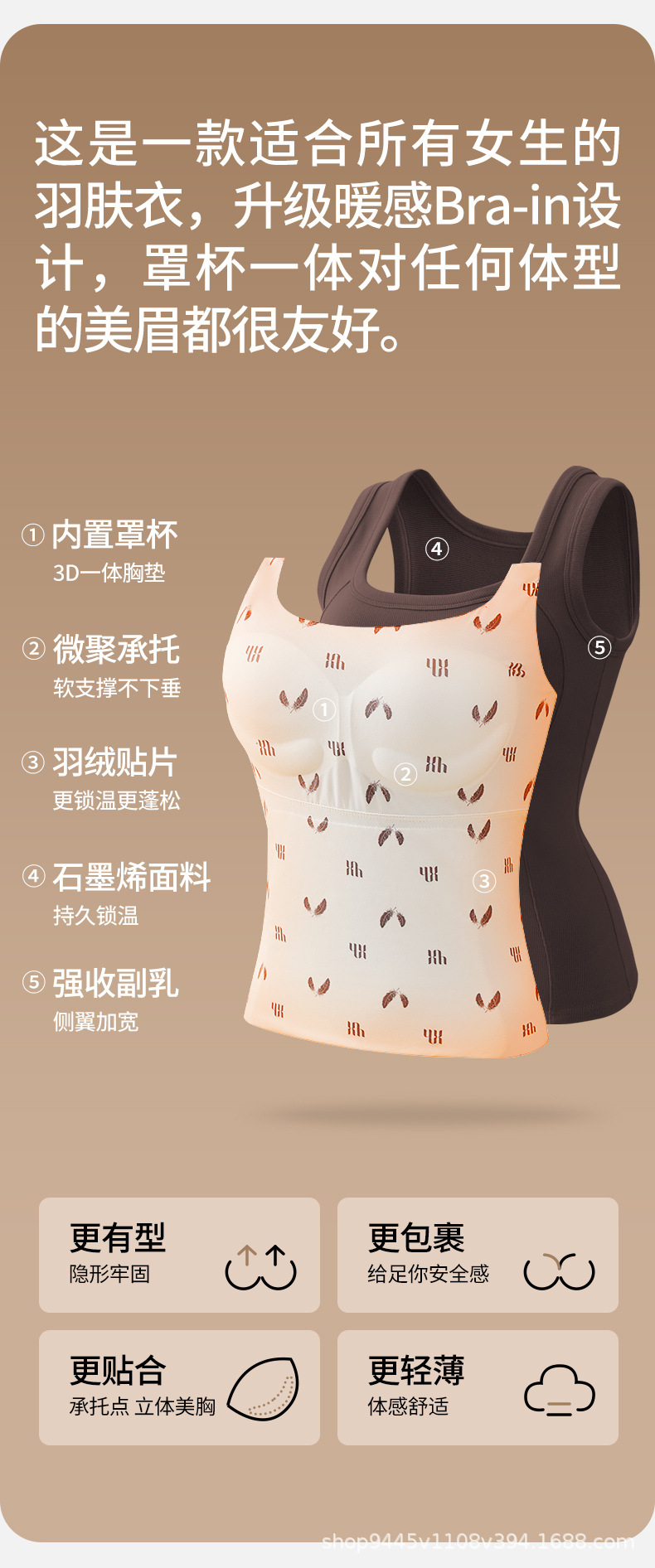 Термопуловер из 90% белого утиного пуха для женщин, бесшовный, без подушечек для бюстгальтера, базовый слой