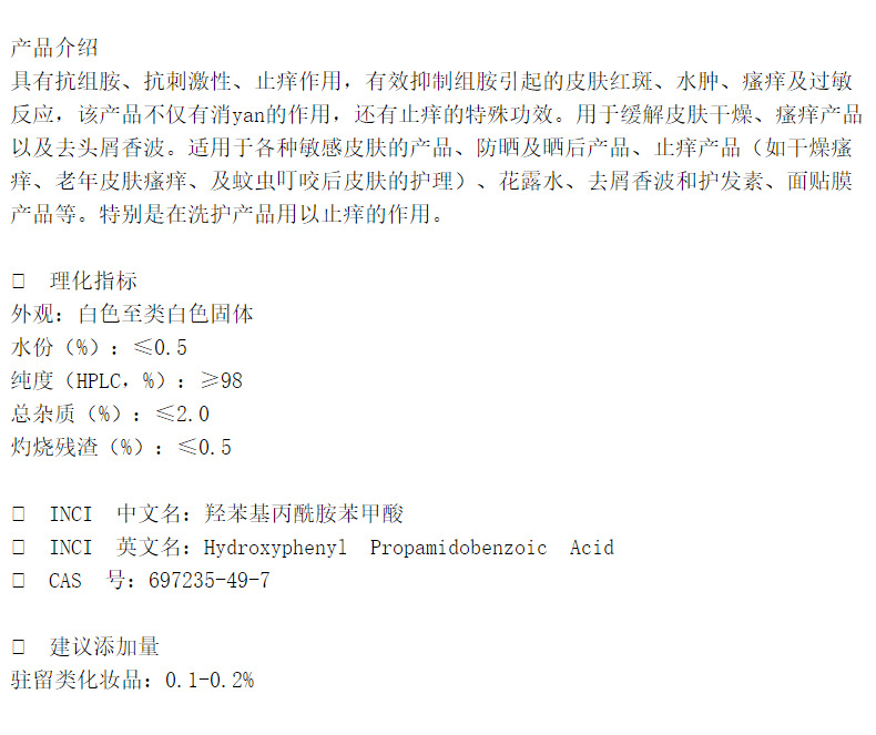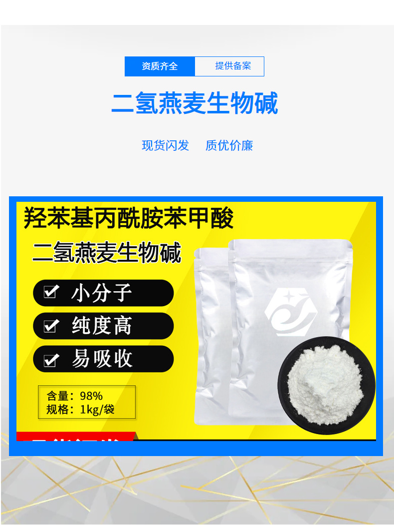 99% Дигидро Овсяный алкалоид 697235-49-7 Косметическое сырье Гидроксифенилпропионовая кислота Бензоат