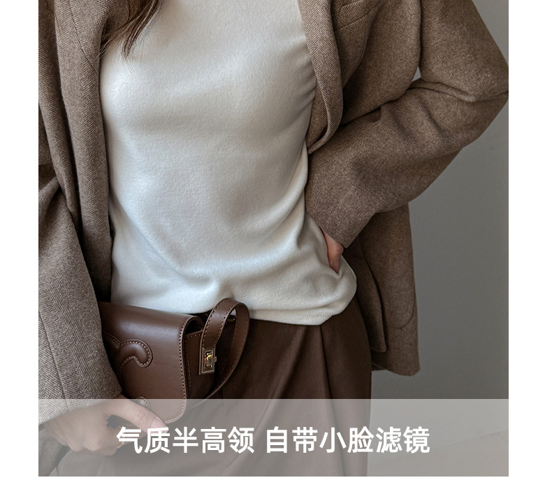 Имитация кашемира, полувысокий воротник, длинный рукав, для ношения снаружи, высококачественная футболка