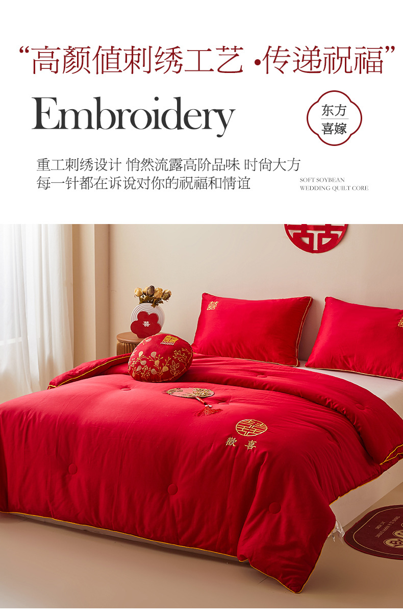 Новое китайское свадебное одеяло из соевых бобов с высококачественной вышивкой, большое красное одеяло