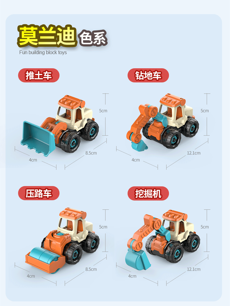 ![]() | 4 morandi engineering vehicles + 4 screwdrivers [opp bag] | ¥3.35 / ≈ 40 ₽ | 9525 | 6097768607337 | |