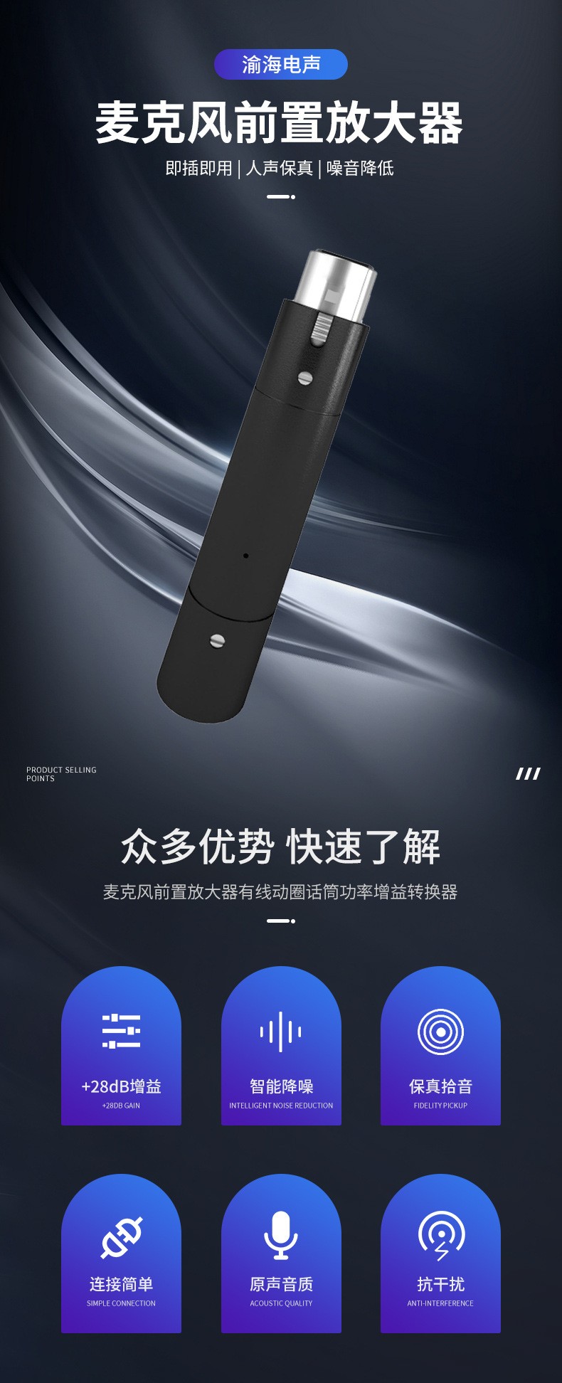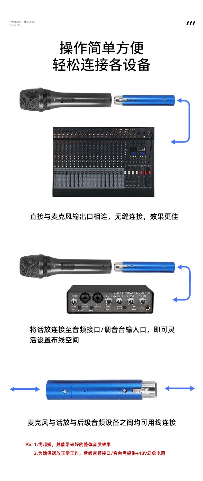 Звуковая карта Mixer 48V, проводной динамический микрофон, предусилитель, запись речи, портативный усилитель с шумоподавлением