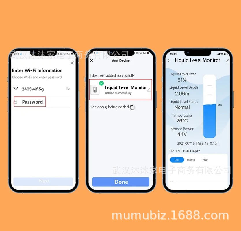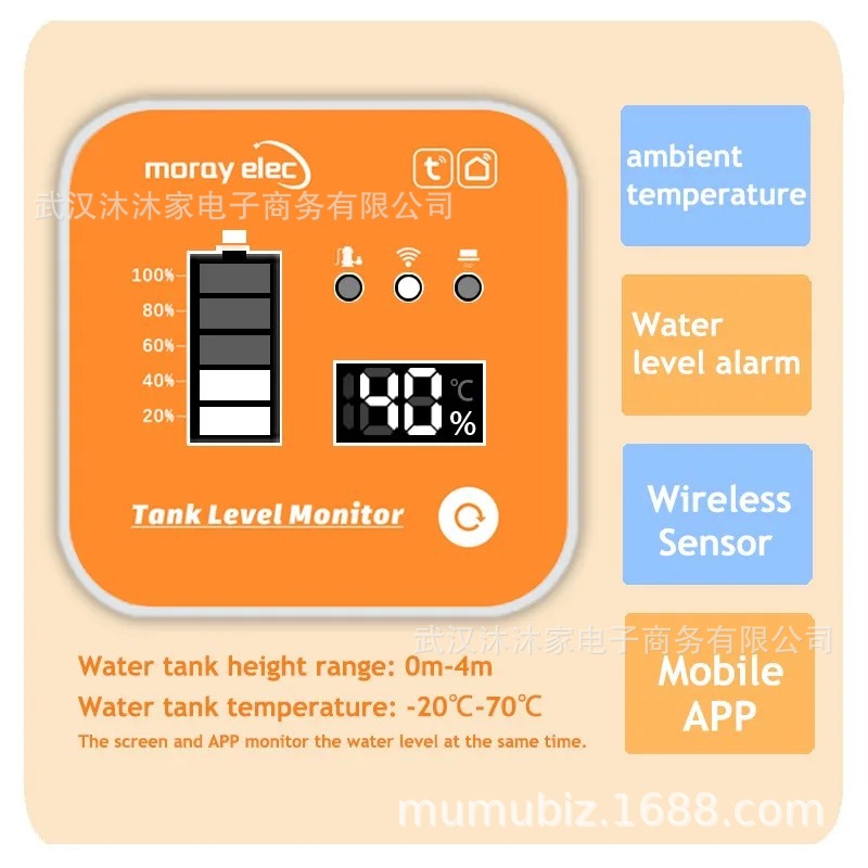 产品名称:WiFi远程超声液位液位水箱监测器带有LED显示器