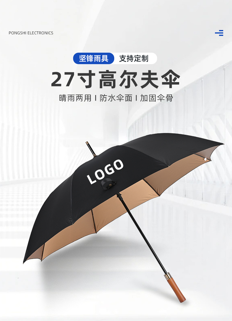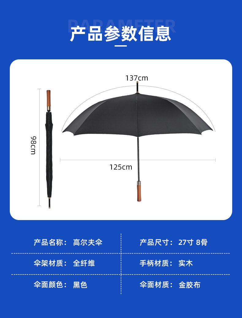27 дюймовый гольф зонт с индивидуальной золотой лентой, деревянной ручкой, полный фибровый зонт, бизнес-подарок, рекламный зонт