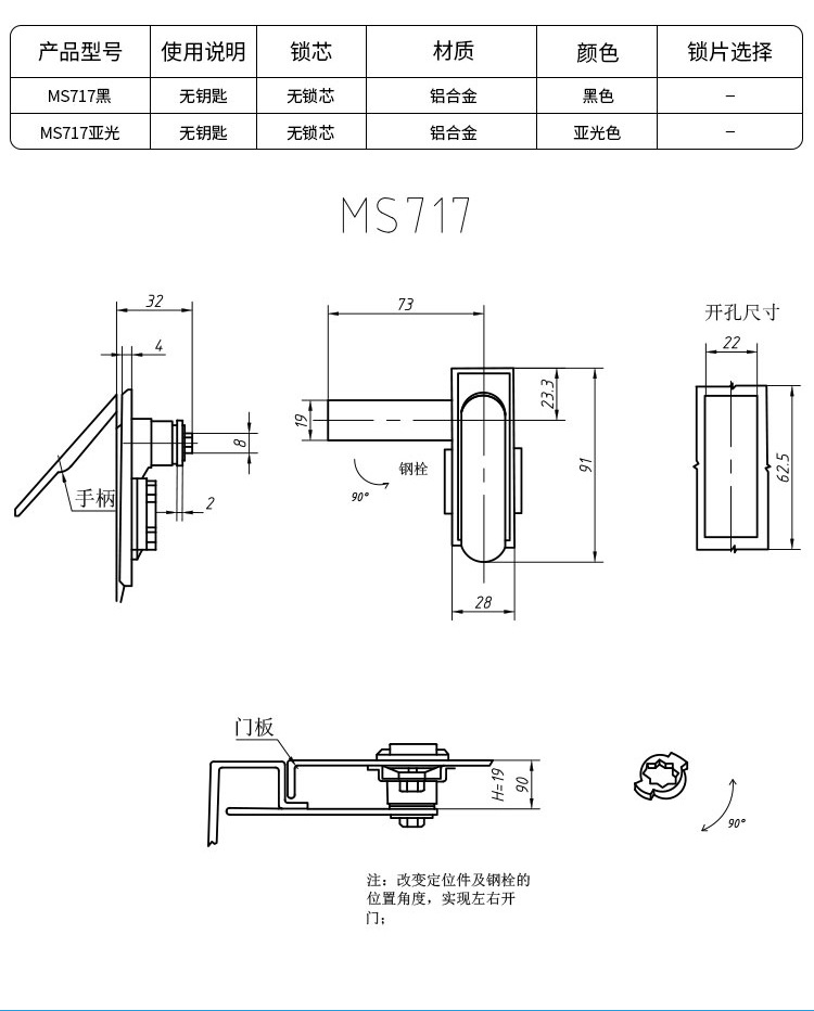 Шкаф распределительный Ms717 с плоским ригелем, замок для файлового шкафа, язычковый замок, алюминиевый сплав, зарядная станция, промышленный шкаф с замком двери